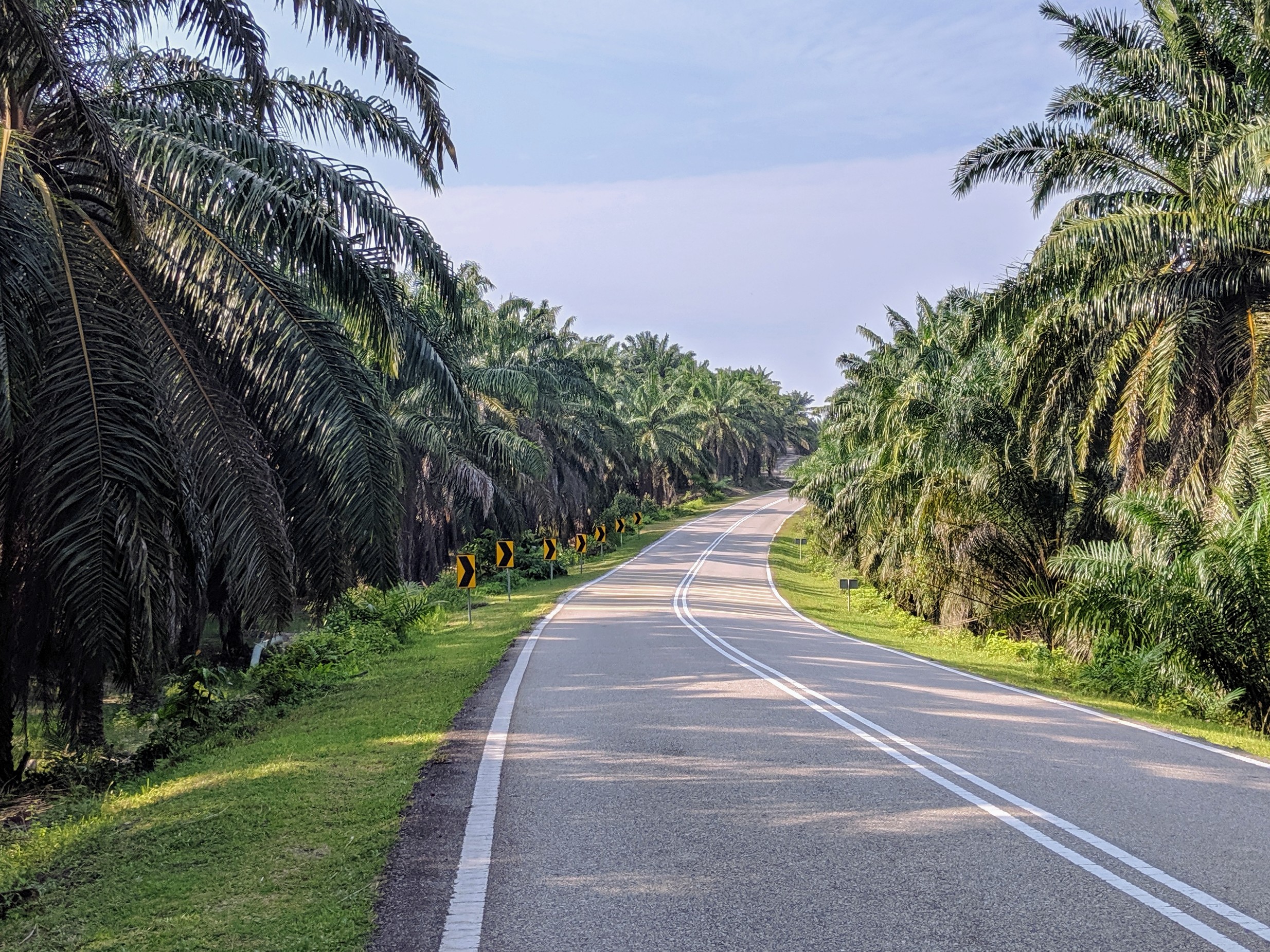 The oil works soon gave way vast palm oil plantations – lots and lots of them. The road was long and straight, running frustratingly close to the coast, which teased me with only the occasional sea view.