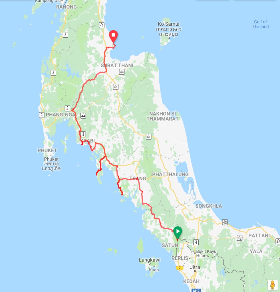 After the run around on Highway 4 I’d decided to cross over to the Gulf Coast where a quieter, more realistic route awaited. On a high from Krabi’s backroads I sought out the windiest route as I said goodbye to Chula and headed east. Unsurprisingly, this was quite slow and made worse by miles of roadworks.