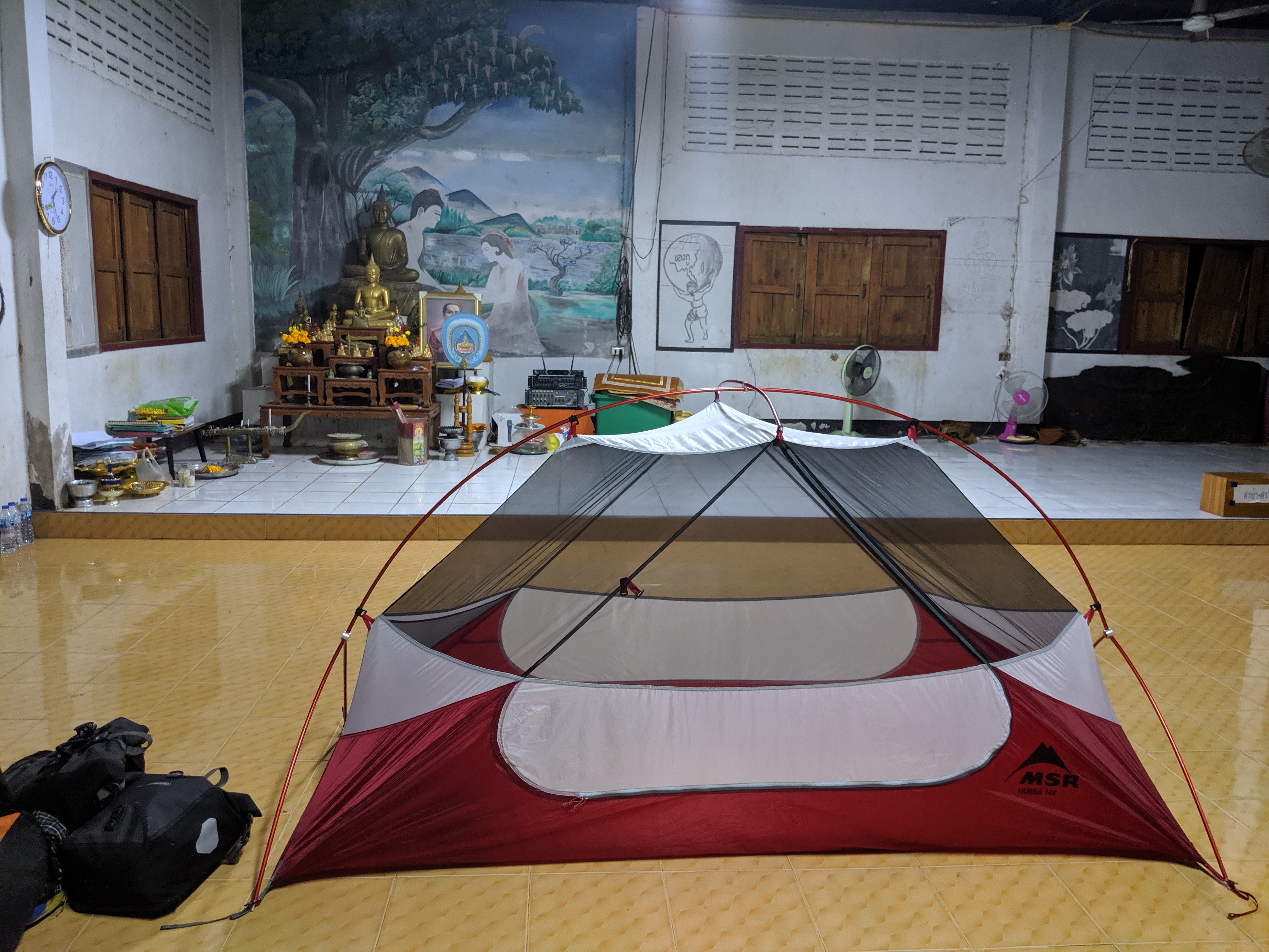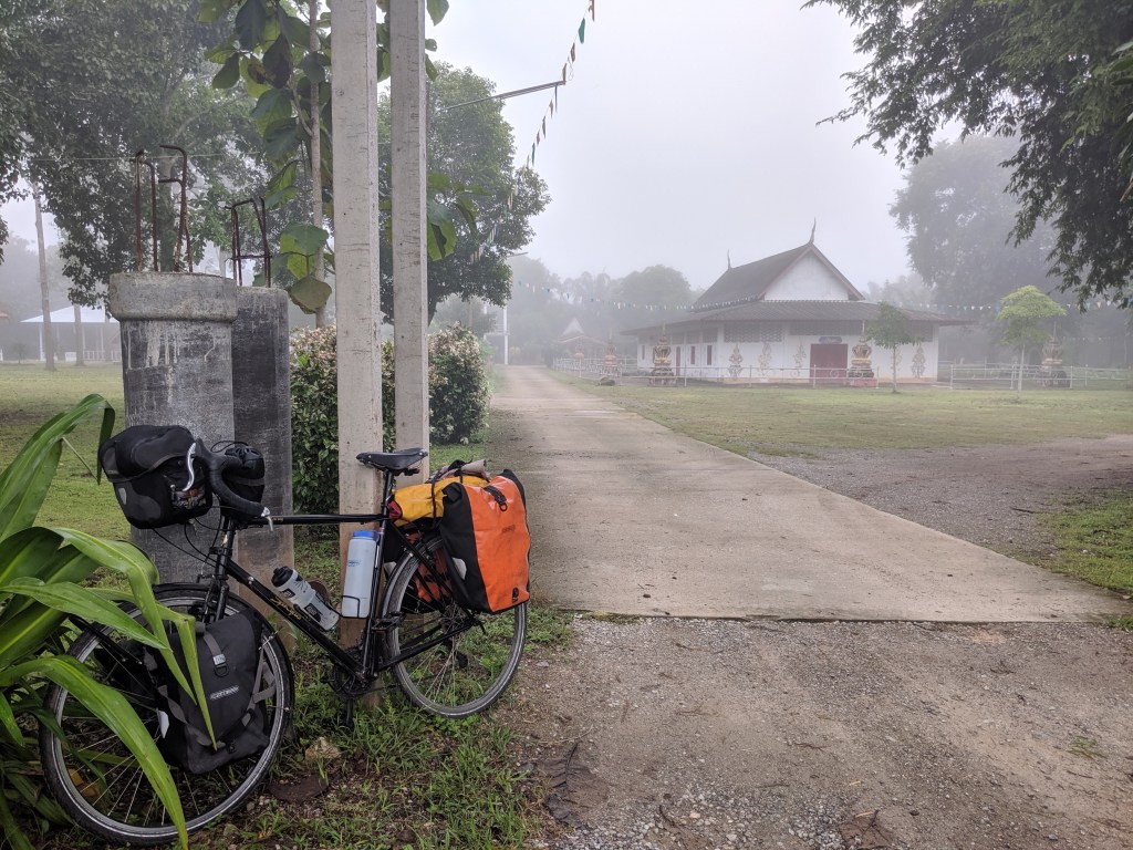 There were few options for accommodation and I had been mulling over asking to camp at a temple. With rain threatening, I decided to give this a go and pulled into the nearest one at dusk. The grounds were vast so I thought they’d excuse a passing cyclists tucked quietly under a tree. Instead the monks offered me a space inside and then tried to give me a fan, mosquito coil, coffee and the wifi password! (All of which I politely declined out of embarrassment!). They were a welcoming bunch.