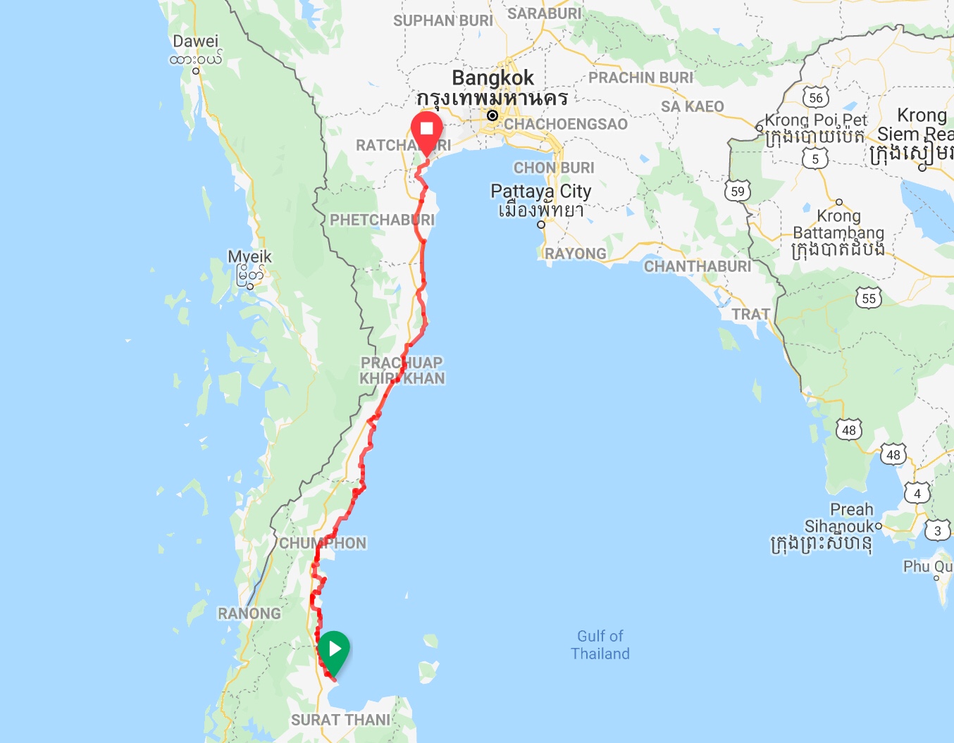 Chaiya to Samut Songkhram: 400 miles