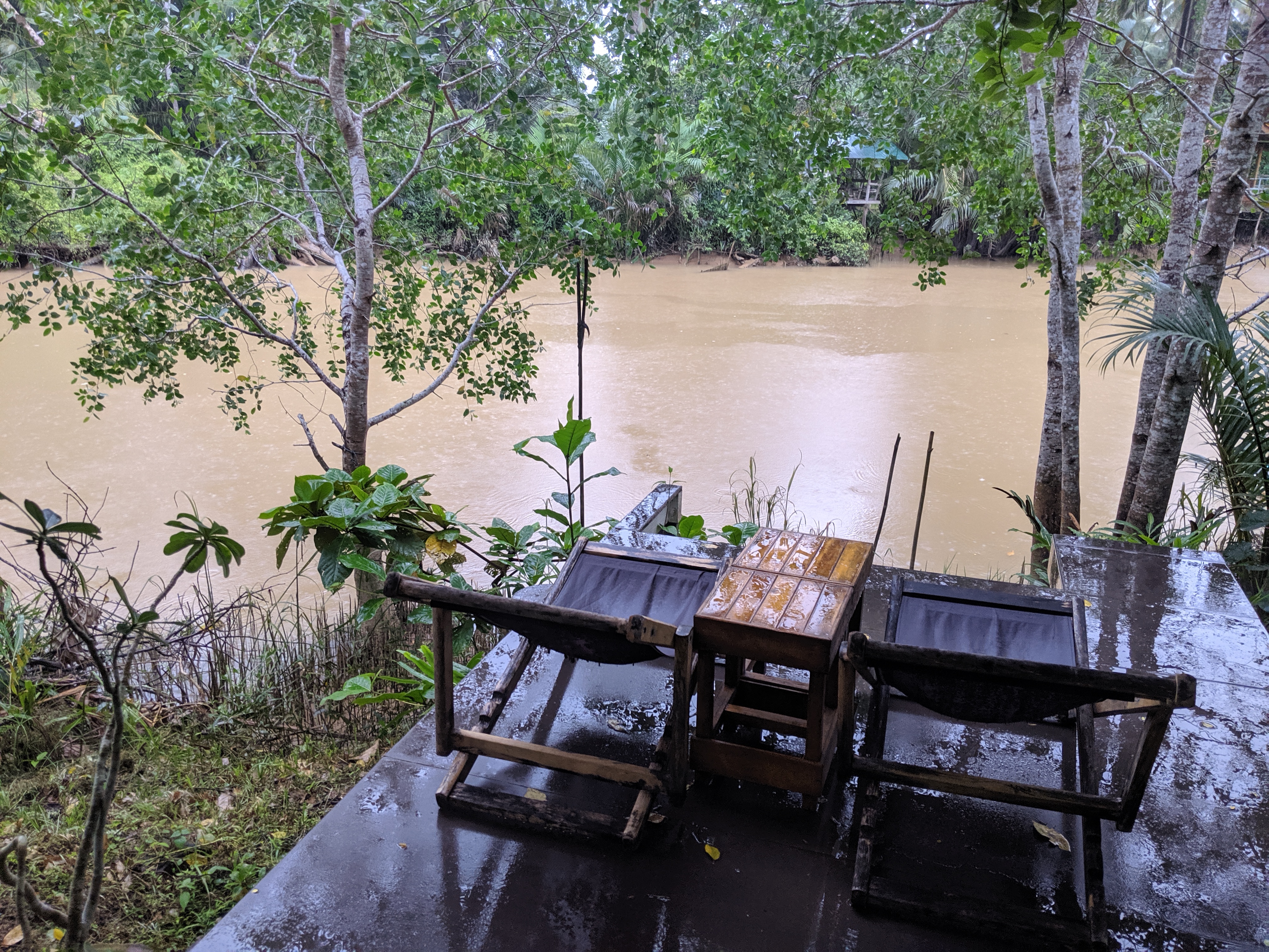 On a friend’s recommendation I’d booked to spend a night in a small boutique resort, set on a river on the outskirts of Chumphon. I was looking forward to using the kayaks and hanging out on the open terrace. Neither of which looked remotely possible as I arrived in the pouring rain!