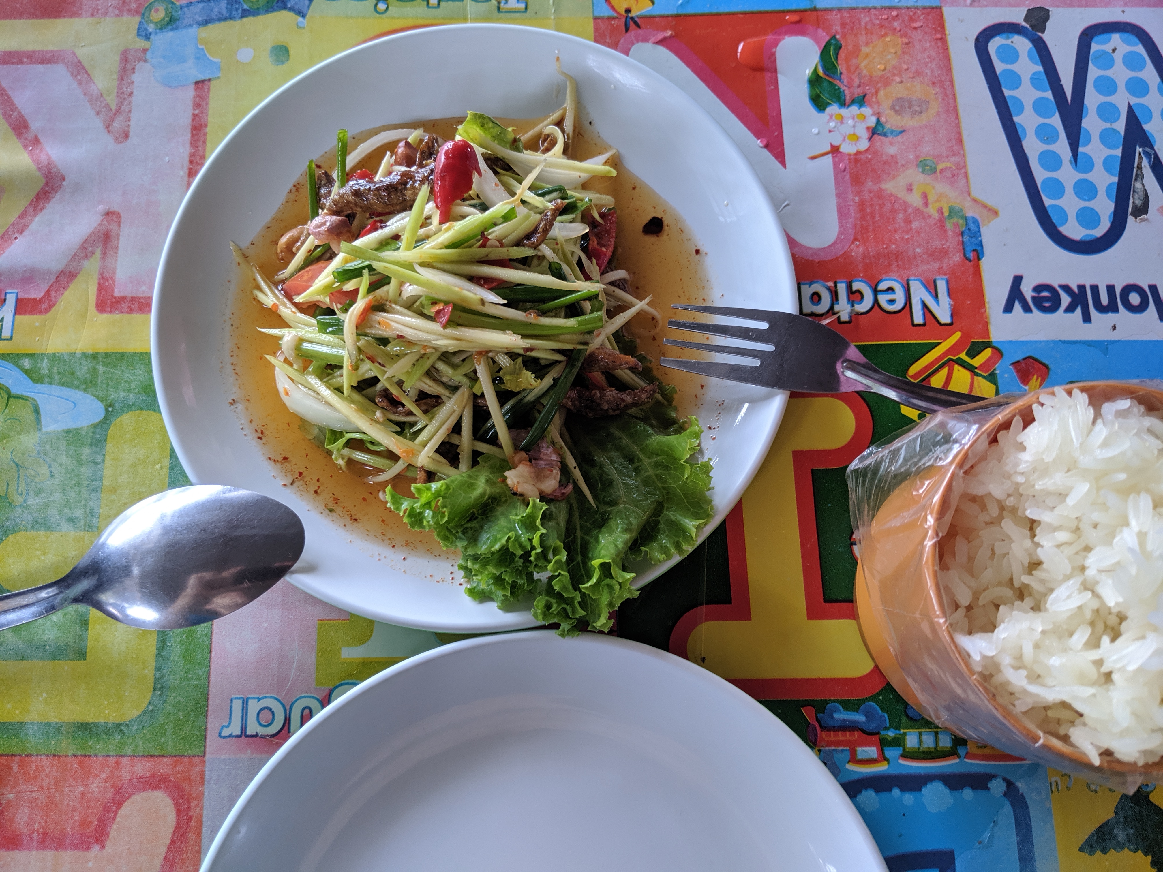 I stopped for lunch. Someone must have notified the chef of my ‘big day’ as they threw lots and lots of extra chilli into my papaya salad to mark the occasion. This challenge put the rain into perspective!