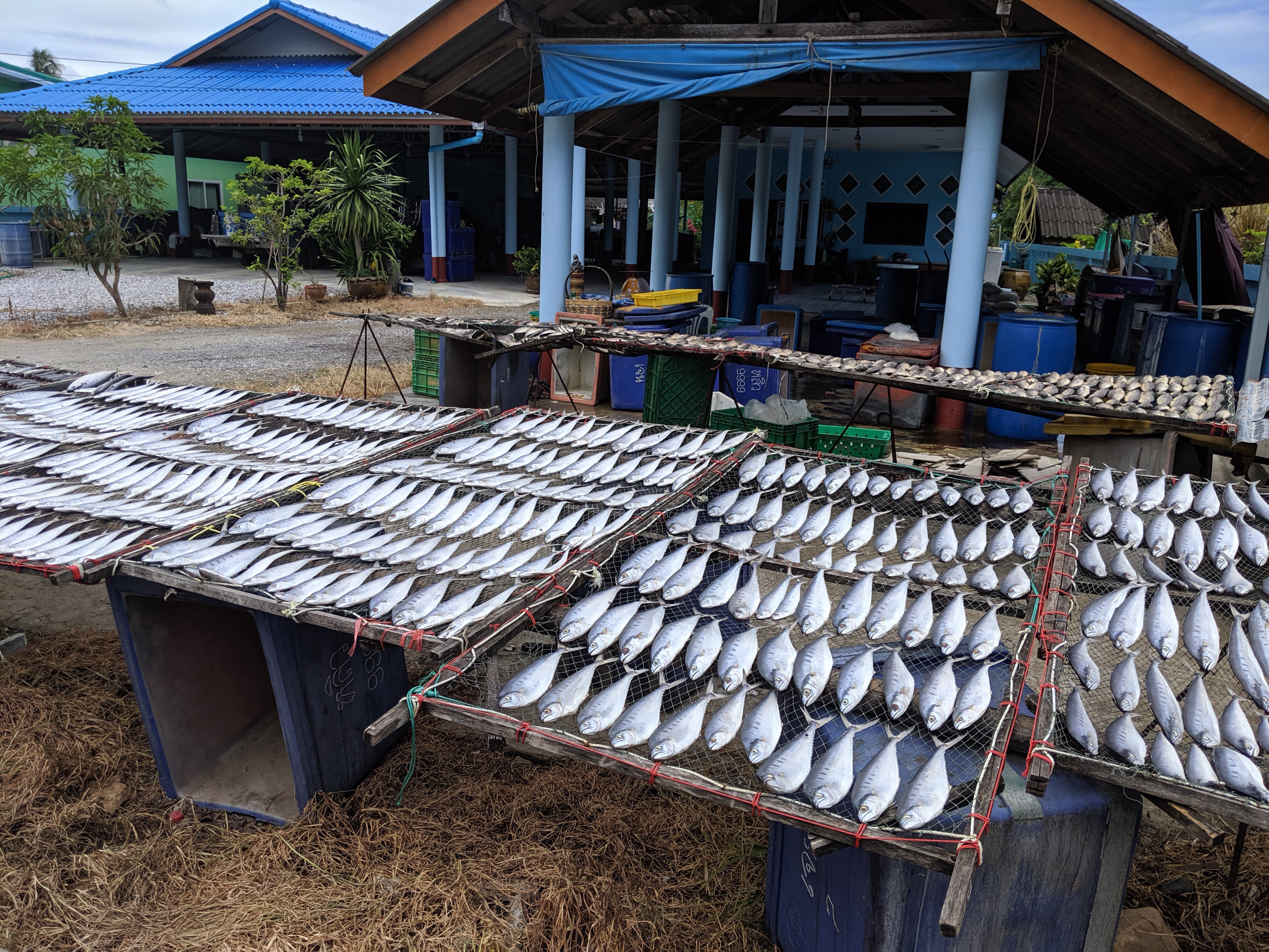 Take two was more successful but it was hard to get motivated. Dogs (usually chasing me) sheltered under cars and could not be stirred. Smoke struggled from coconut bonfires and the wistful sounds of Thai folk music crackled through weary speakers, adding to the lazy Sunday mood. Occasionally I passed someone tinkering with a boat engine under cover or checking on a pot of rice. Otherwise there was little activity to spur me on.