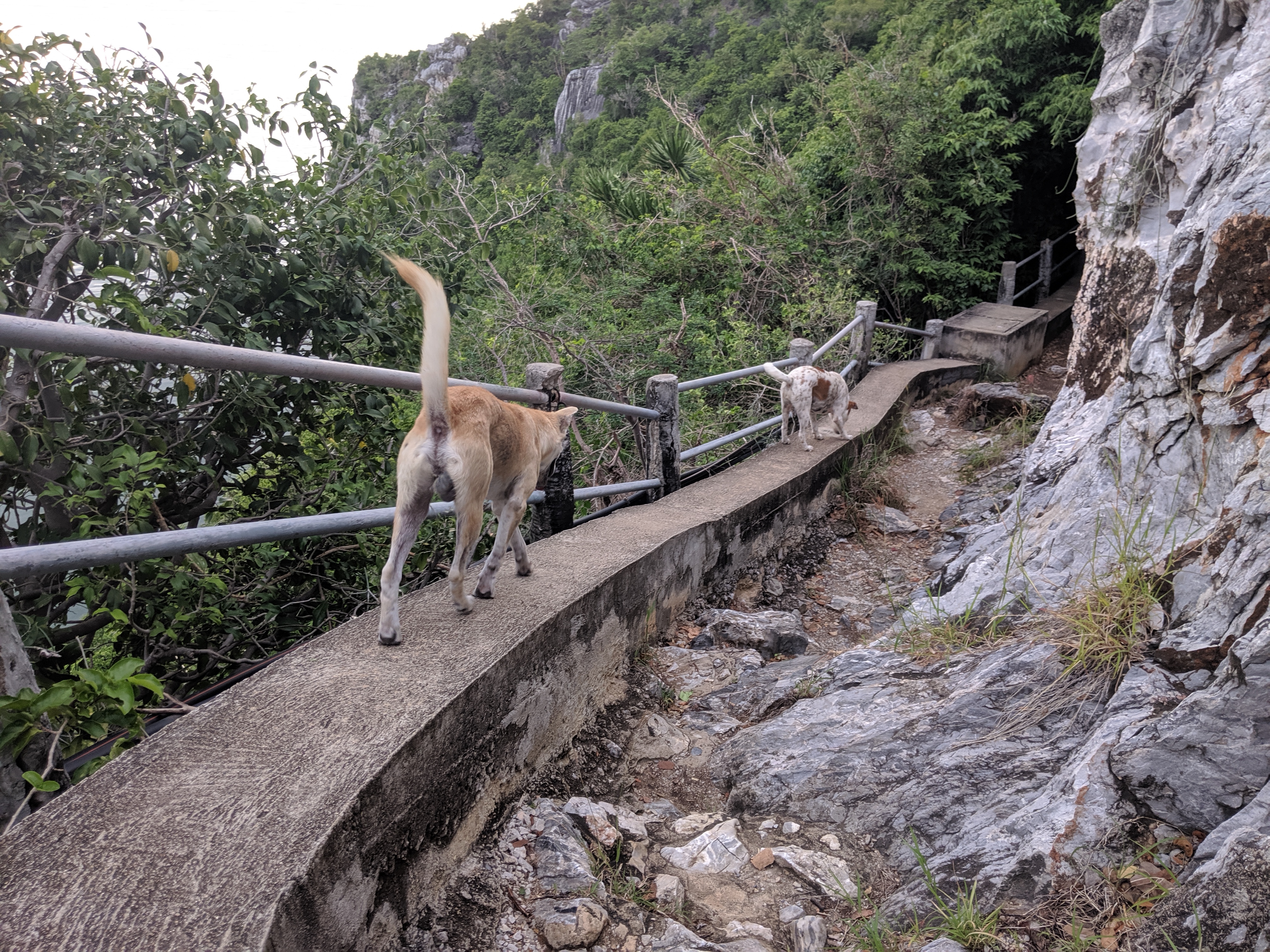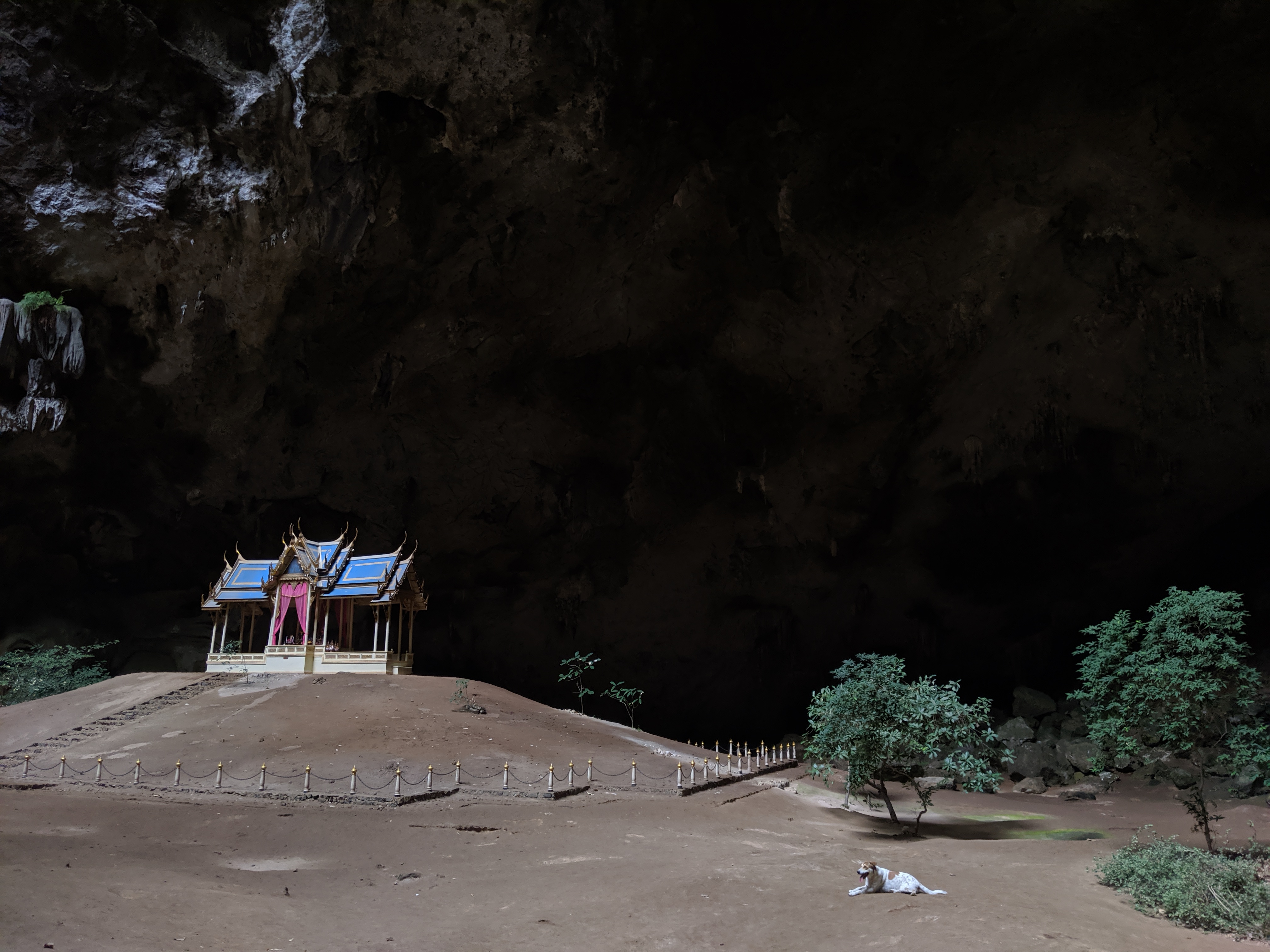 By the time I arrived at the Phraya Nakhon Cave, my dog whispering was getting out of hand. Two of the dogs that initially came running for me happily waited whilst I stashed my bike with a local drinks vendor, then accompanied me on a 7km round trip along rough and steep trails up to the cave.