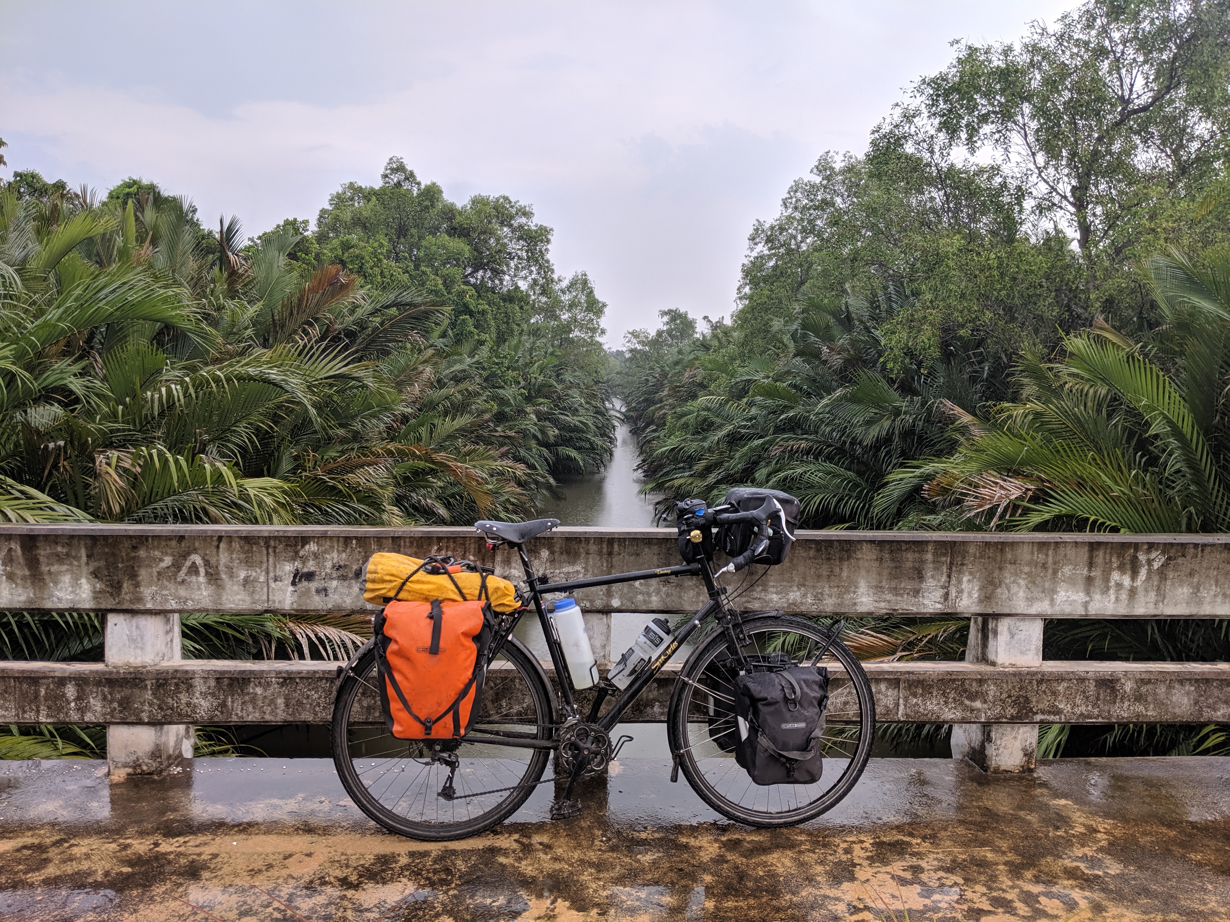 I’d only managed a few pages in my new Kindle, but couldn’t really justify almost a week off the bike. I had to press on. The coconut plantations I rode through over the coming days, even in the rain though, were beautiful, the yellowy green palm fronds pretty in each kind of light.
