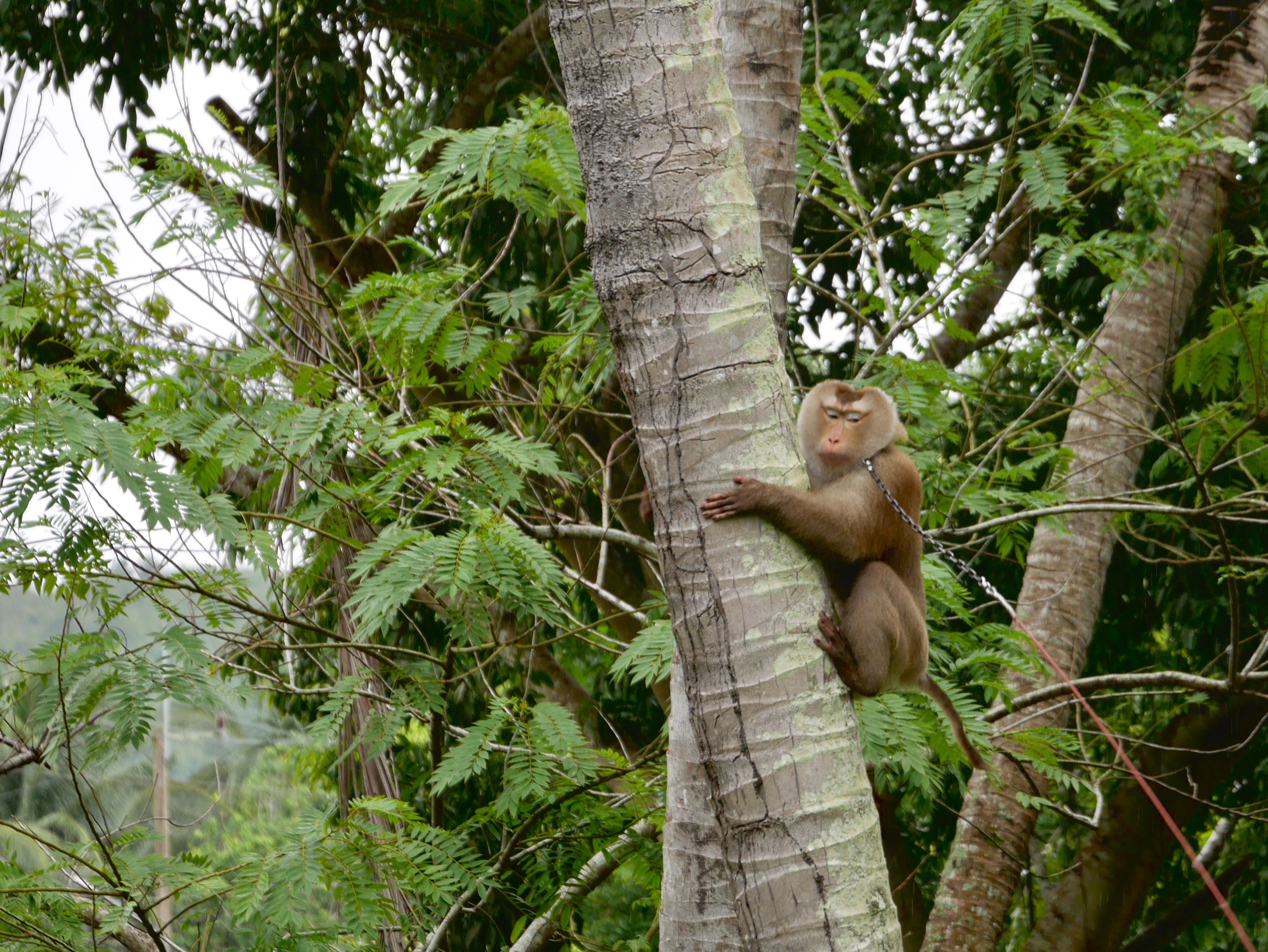 The local “monkey schools” that train them say they are welcomed into the handler’s family as pets, but the off duty ones I saw were often chained to a tree alone. Sad for such a social animal.