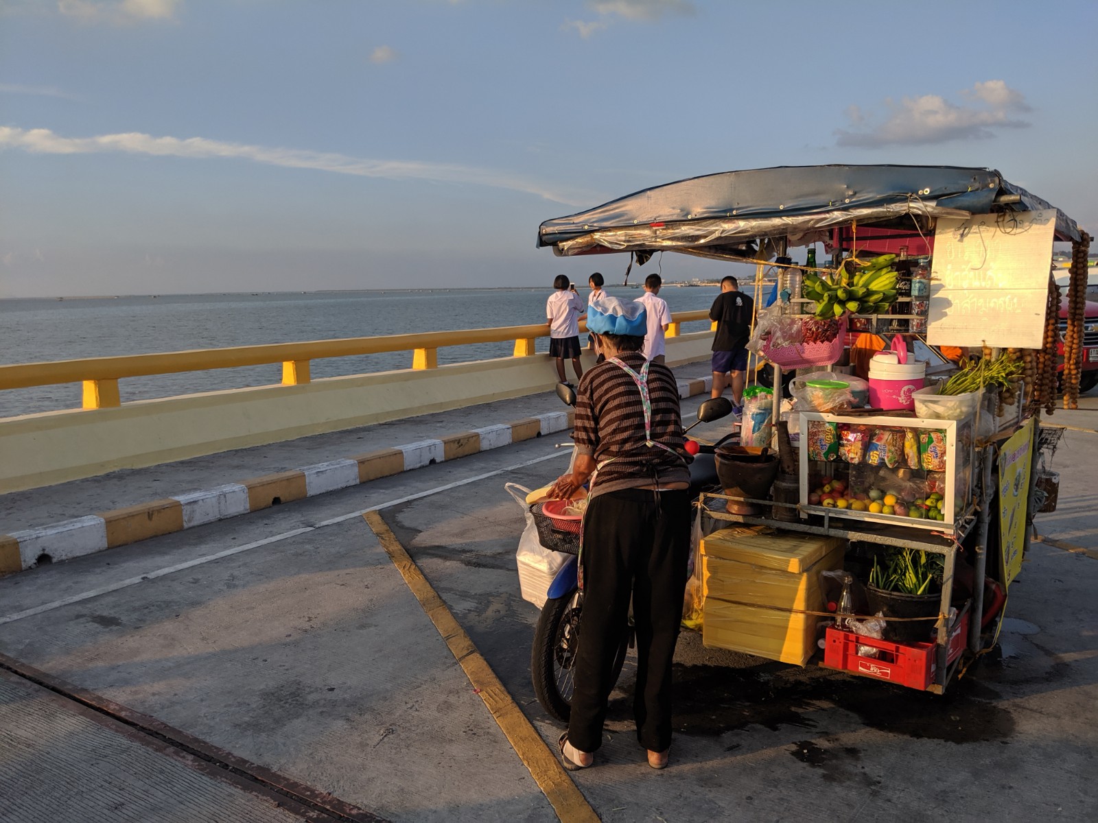 Things also picked up on the road as I eventually wrestled free from the highway at Chumphon, striking out for a few kilometres on the city’s ‘ocean bridge’.