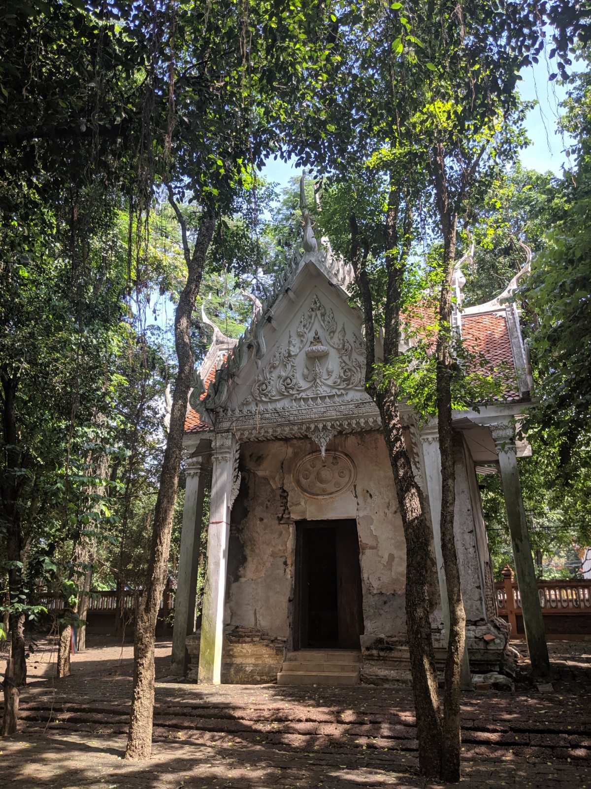 A few monks sat chatting in the shade whilst the resident dogs did the usual rounds. If you didn’t look up you might not even notice the thousands of fruit bats casually snoozing en masse above. It was an eery sight, especially with the creepy shrine below, but also strangely comical with the bats fidgeting and squabbling constantly in their sleep.