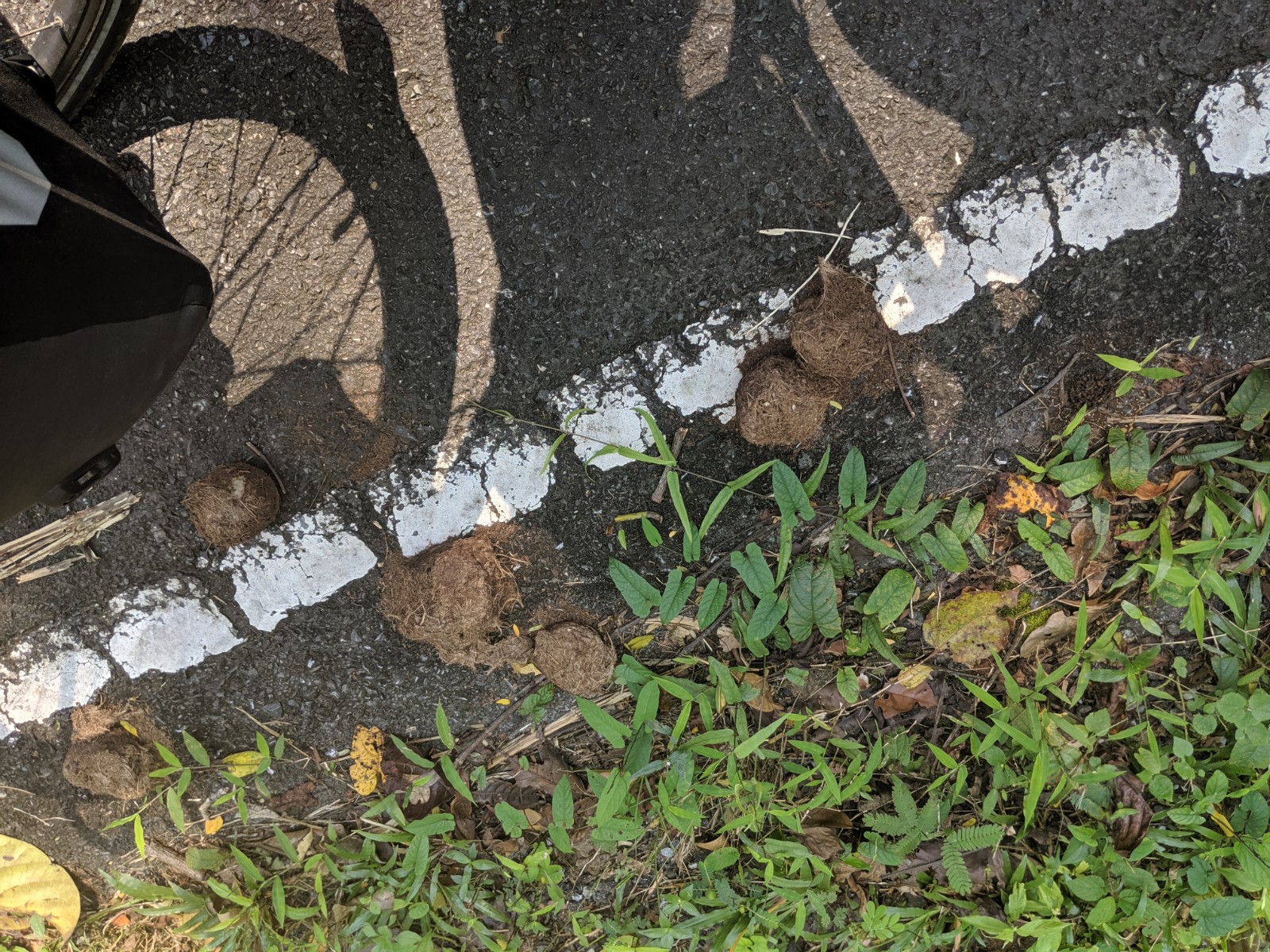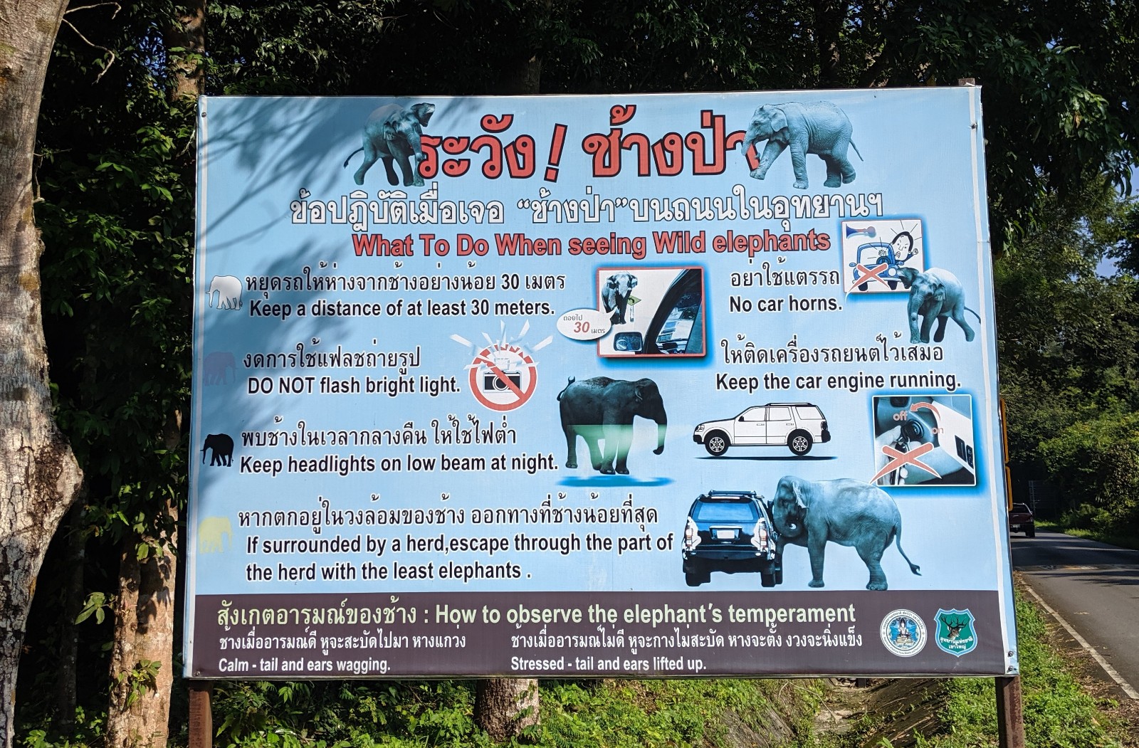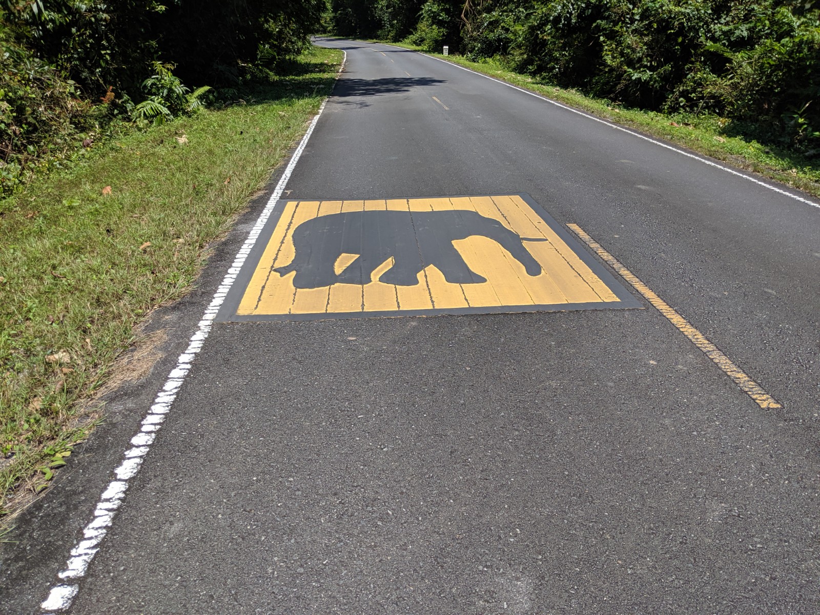 Hmm…I decided to at least give the elephants a head start, setting off a bit later than usual. This sign at the entrance and the frequent piles of dung on the road made me feel I’d done the right thing.