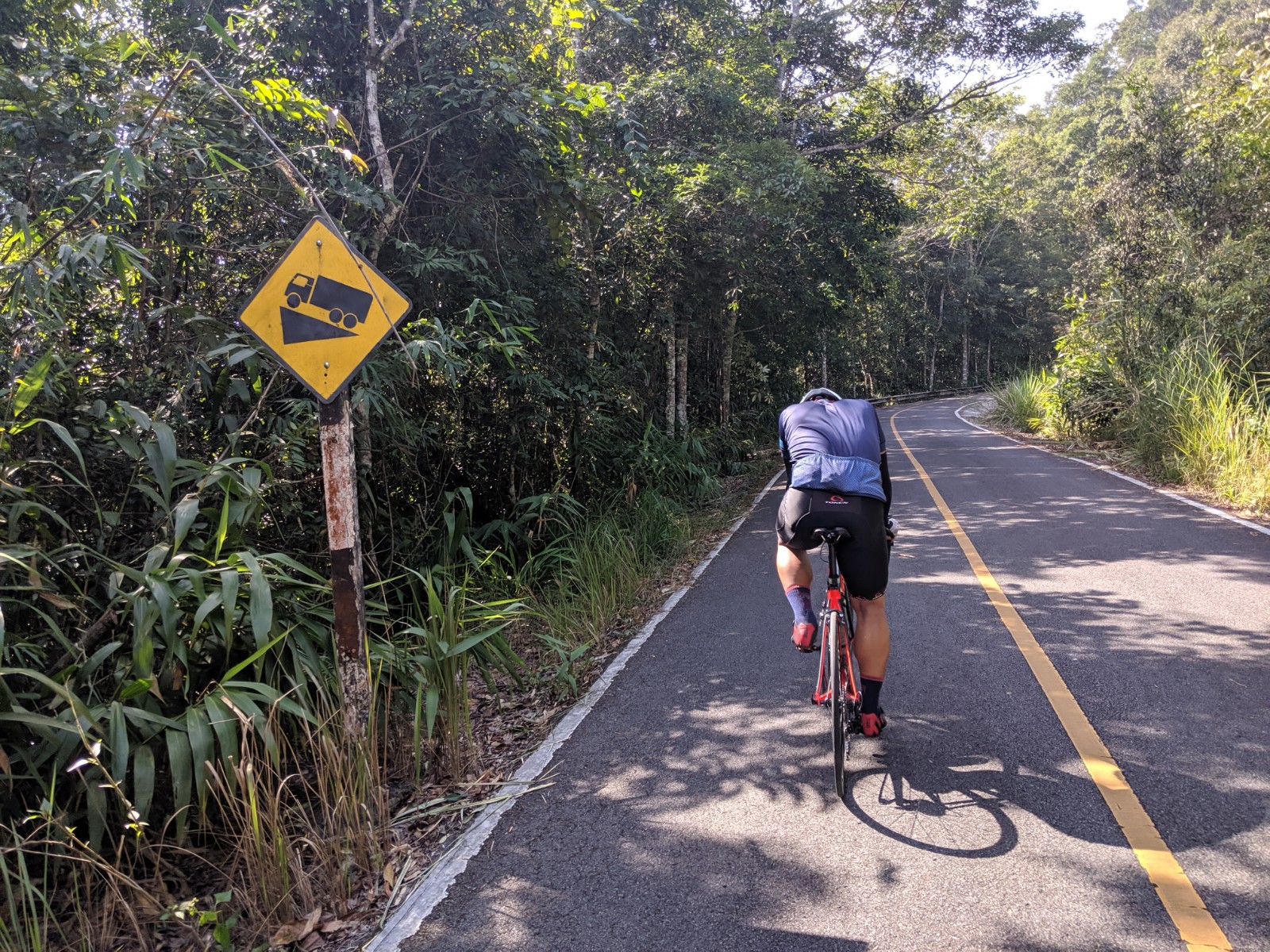 I started thinking back to Chula, the man I went for coffee with in Krabi: ‘if you do one thing’, he said, ‘ride Khao Yai National Park!’ (now a good way off my route). He harked back to his cycling days there with great fondness, but put as much effort into joking about its cranky elephants – a bit of a worry if you’re on a bike.