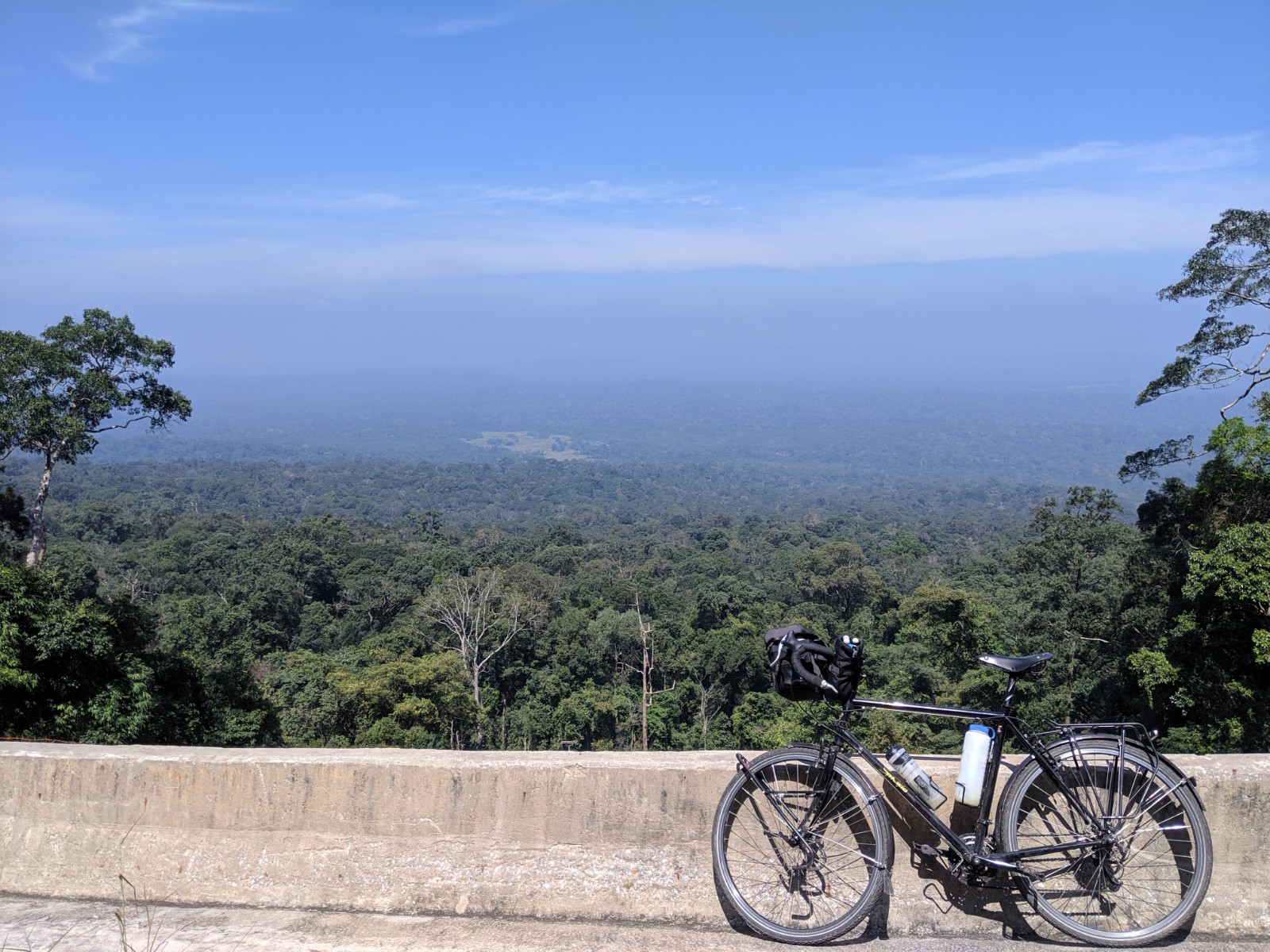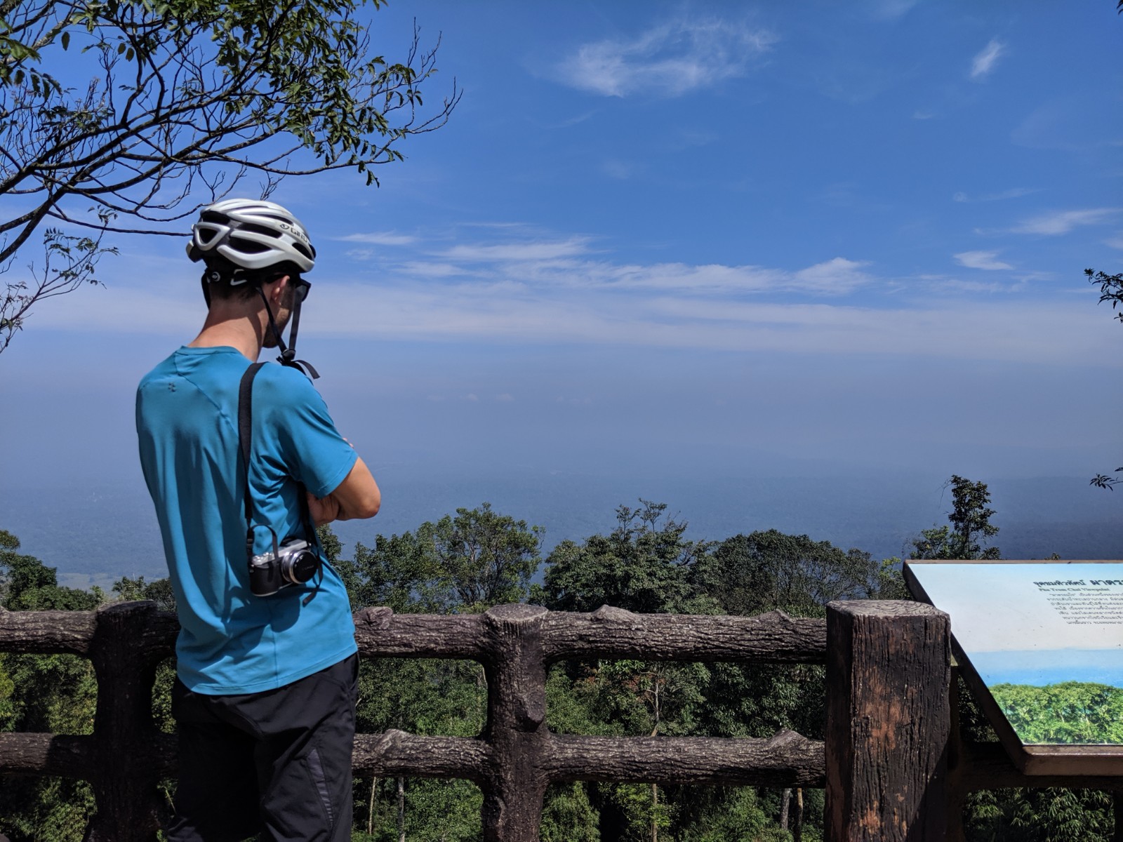 The next morning I decided to climb up to the highest point of the park. After giving the elephants another respectful head start (better safe than squashed), I stashed my panniers with a ranger, and set off up toward the Pha Diao Dai viewpoint. It was a real grit your teeth job to get there, even without luggage, so I was a little miffed to find two leeches tagging on for a free ride/meal on the way up.