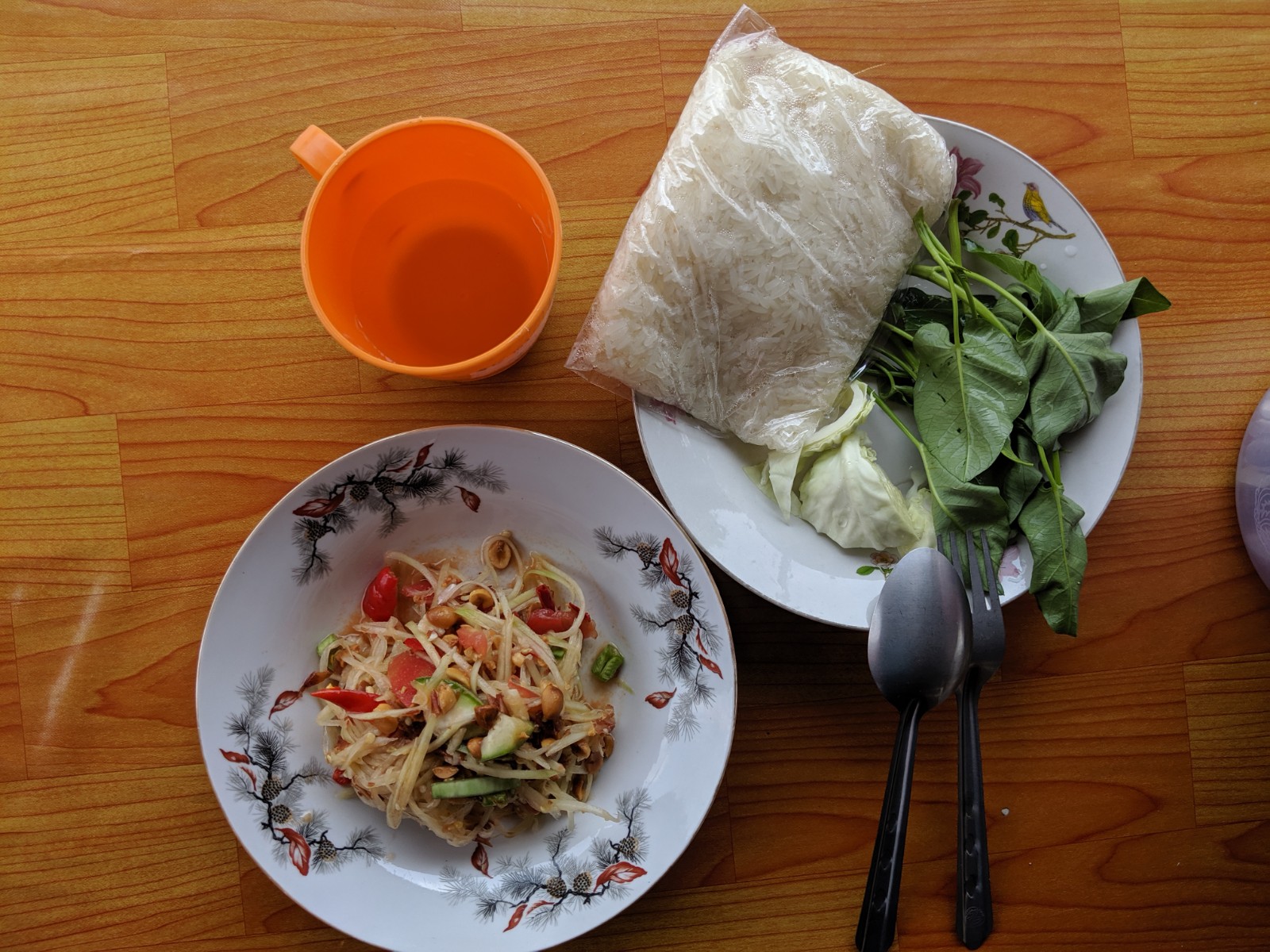 She wanted to practice and persuaded me to stay for some papaya salad. “He always has papaya salad” she said, “and tea, he likes his tea!”