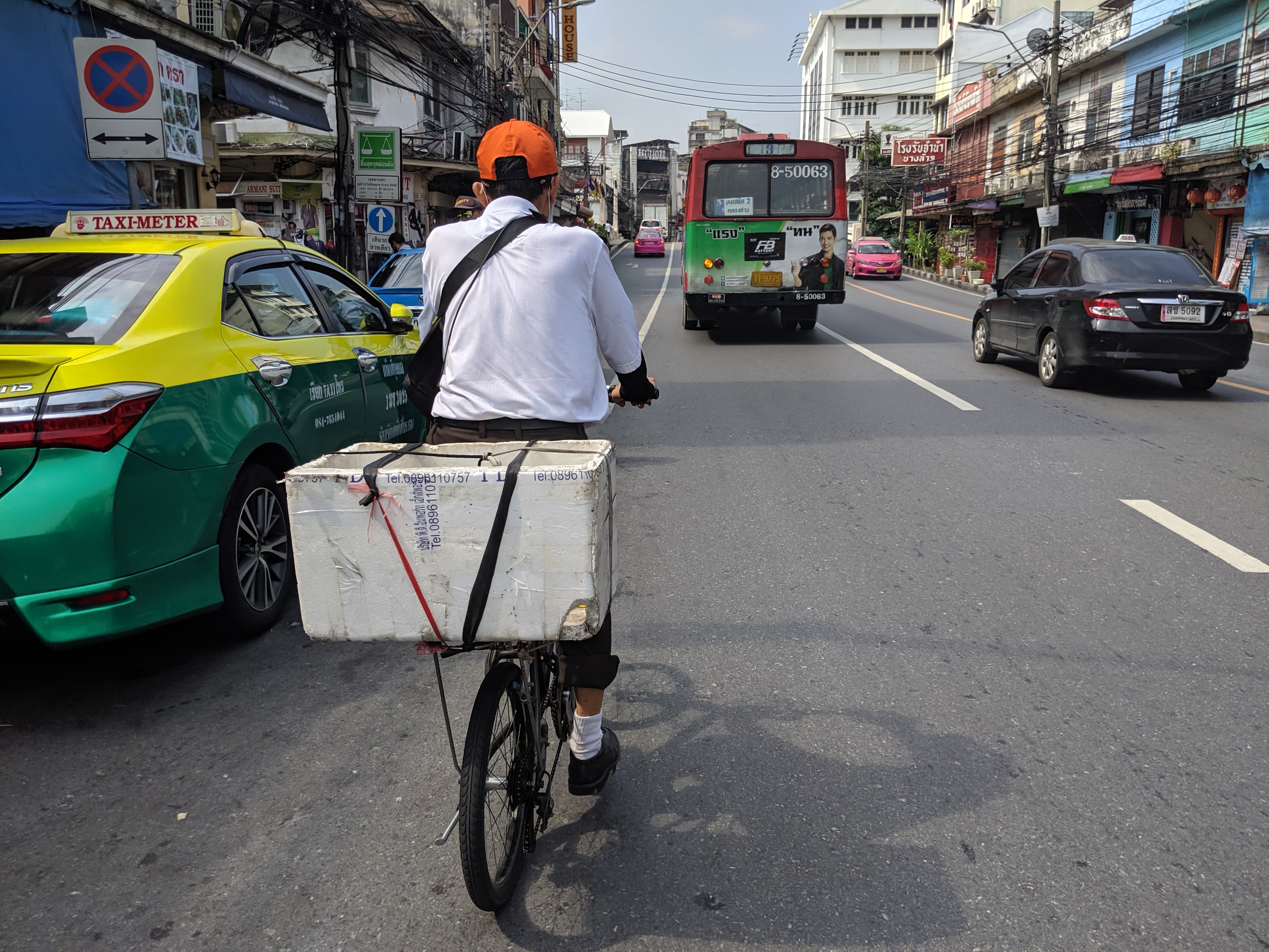 For all the horror stories of Bangkok traffic, leaving the city was surprisingly easy and drivers, (even the city’s taxi drivers – who have a history of telling me off!), were all super courteous and gave plenty of space. In a town where some people are literally pushing their entire business down the road, I guess a bike is no big deal.