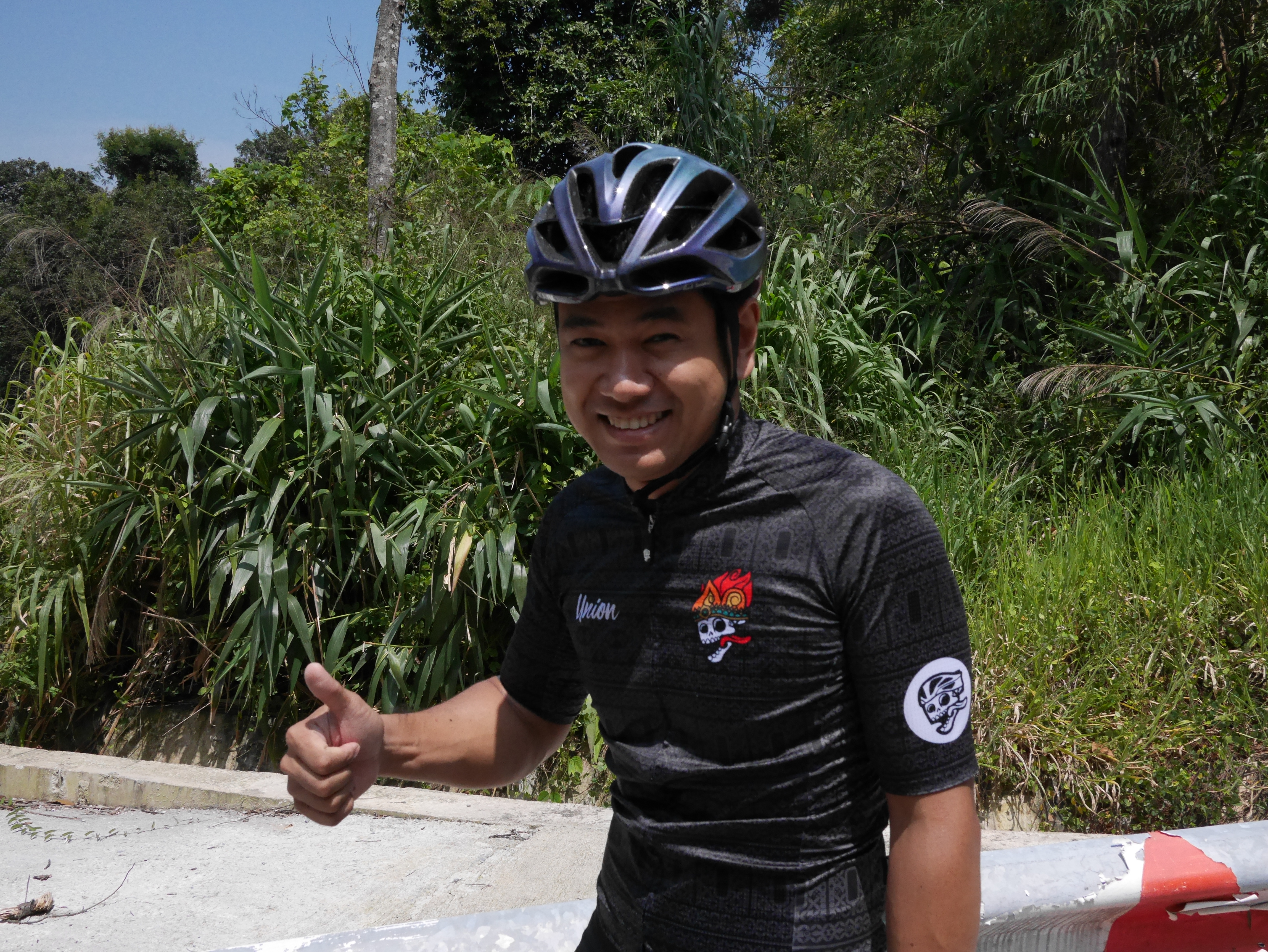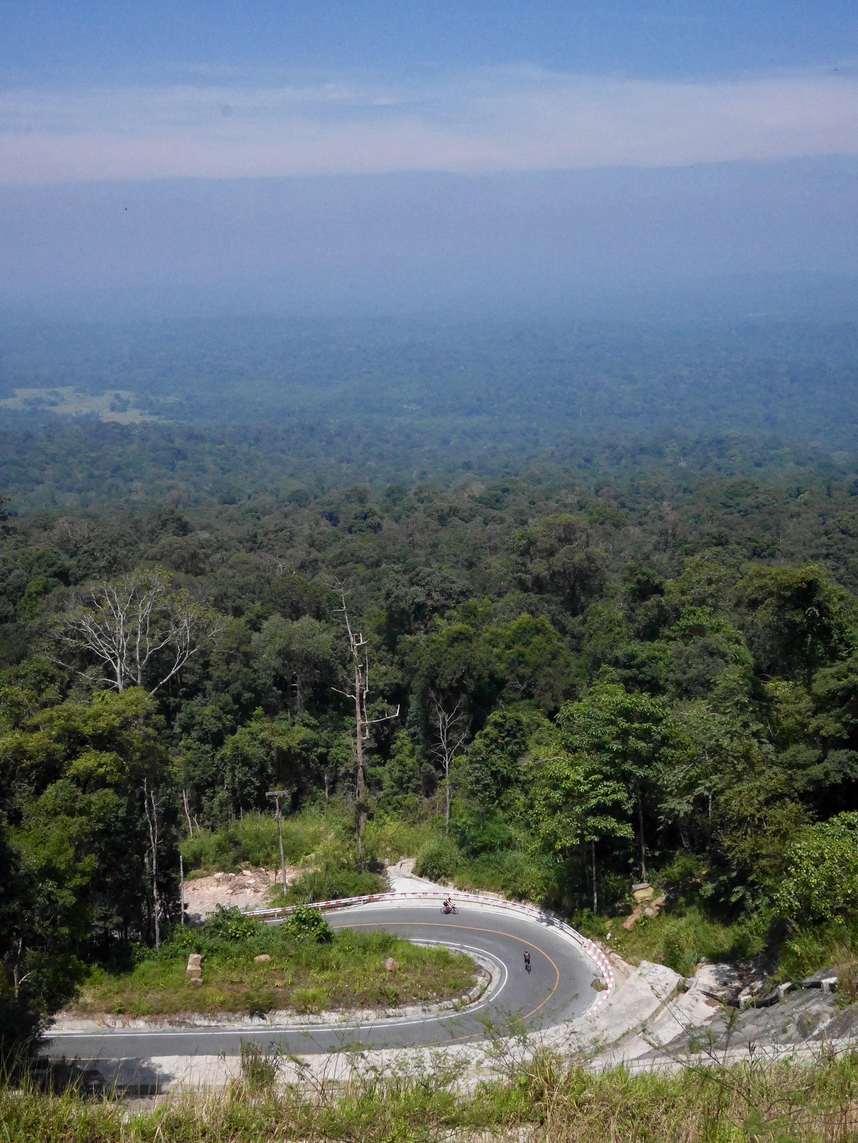 On the descent I spotted a fun photo opp of some switchbacks – a Thai cyclist pulled over and we took a few photos of each other making our way down.