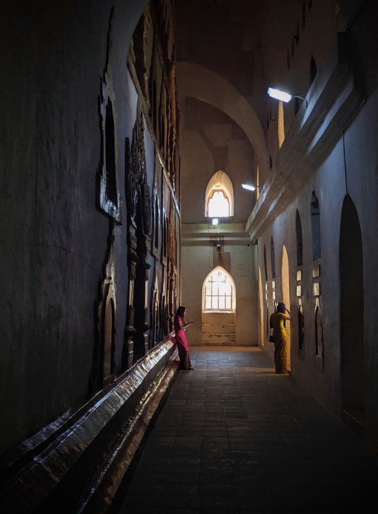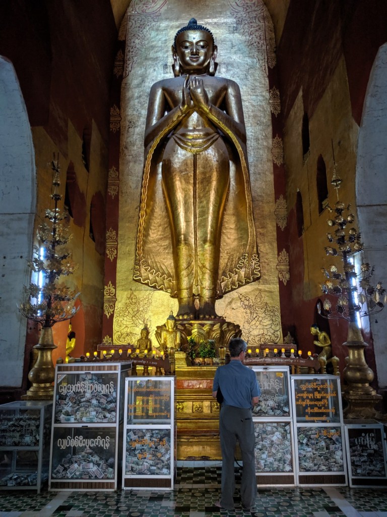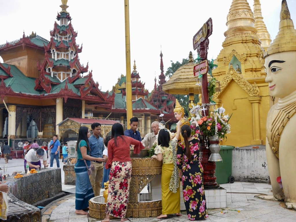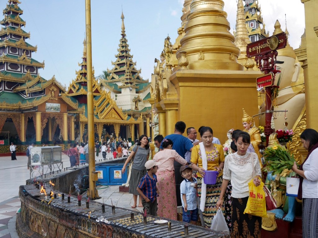 The city is so laid back that we actually have to ask around for a guide at the Shwedagon Pagoda, a vast and gleaming temple complex, and national icon. We are introduced to a gentle but enthusiastic character who tells us stories under the shelter of a big sports umbrella, the sun now bouncing off the gold and marble at all angles. Donating gold (and diamonds) is said to bring merit in the next life, but maybe a little questionable in a country so poor. There are 22,000 bars worth in the main stupa alone – more than than the entire national reserve!