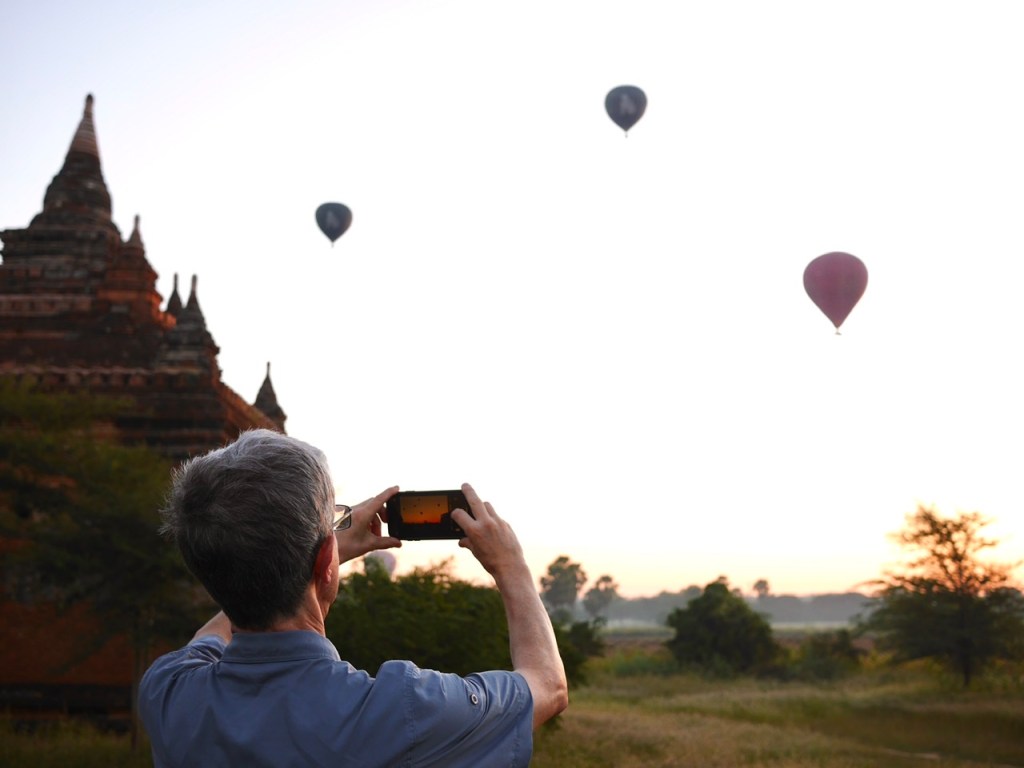 With our e-scooters it was easy enough to make our way around the dirt tracks and find some quiet spots for sunset and sunrise, where we watched the daily flight of balloons float their slow way over the ruins.