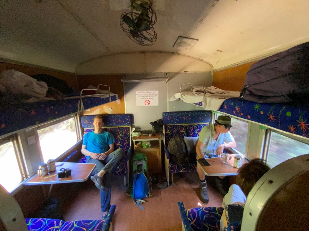 Before boarding we bumped into our friendly guide from the Shwedagon Pagoda who insisted on taking us right to our carriage and introducing us to the train guards to make sure we’d be looked after. Like everyone we met – a lovely guy!