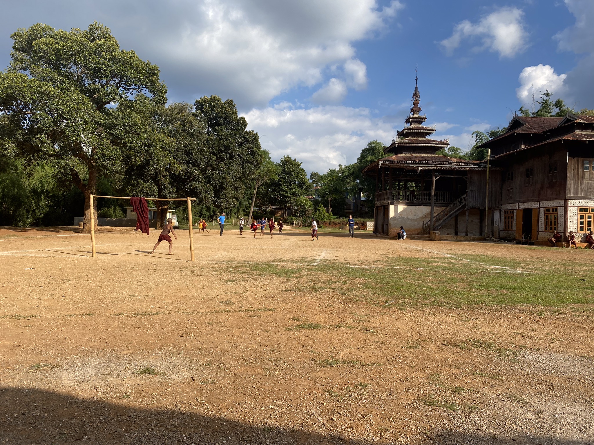 Ye Lay walks the route often in the dry season so was pretty friendly with people along the way, (even though he grew up in Yangon). When we stopped for a break at small monastery, he challenged the novice monks to a game of football.