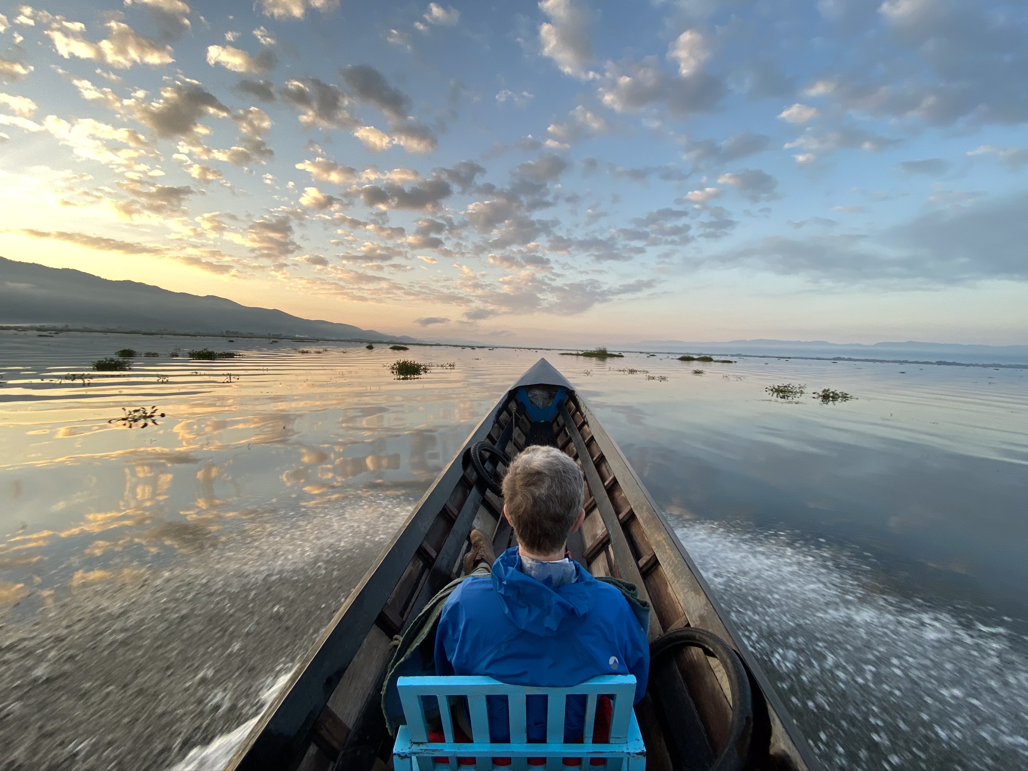 As well as Ye Lay, we’d been hiking with a super nice Belgian couple, Thomas and Alice. We agreed to hire a boat together on our last day and head to a lesser visited section of the lake three hours south. It was cold as we set off and we hunched up under blankets until the sun crept up from behind the mountains.