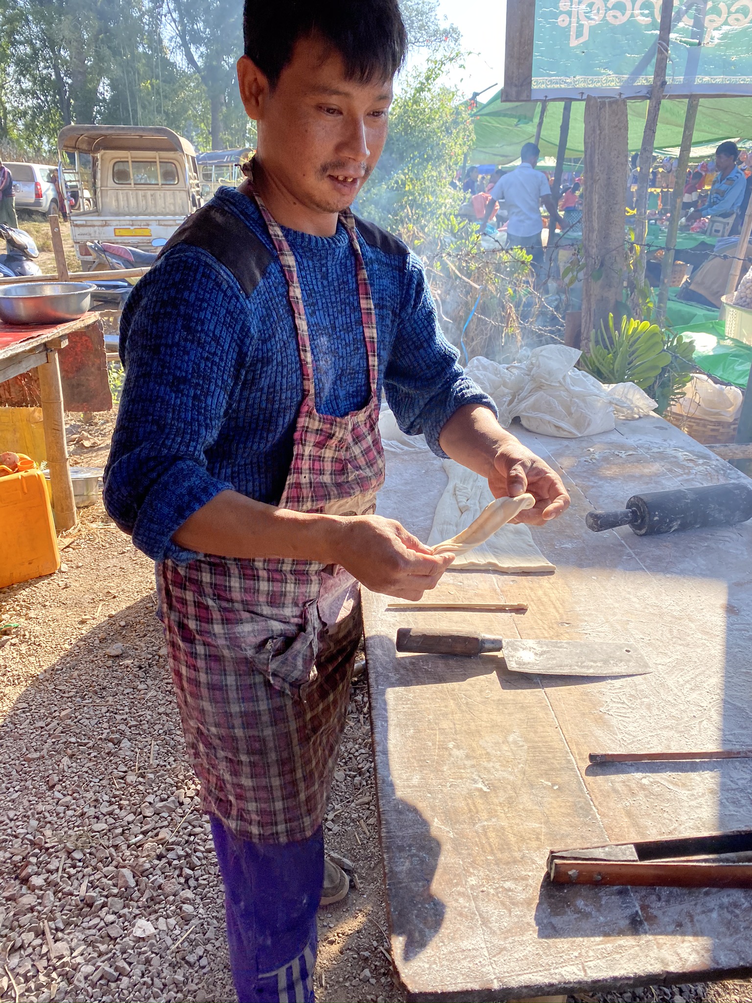 We were just tucking ourselves in, in fact, when the music cranked up for wedding number two. Through the paper thin bamboo walls, we (and the rest of the village) were treated to a kind of all night rave. It wasn’t a party – this was the cooking and prep for the party which Ye Lay explained might involve hundreds of people who’d be up the entire night. The music did stop at points. During these pauses we heard the killing of a pig – unbelievably loud and drawn out, followed by the megaphone blessings of various monks, conducted at full volume, to wish the couple well before dawn broke. Things finally wrapped up around 6:00am.