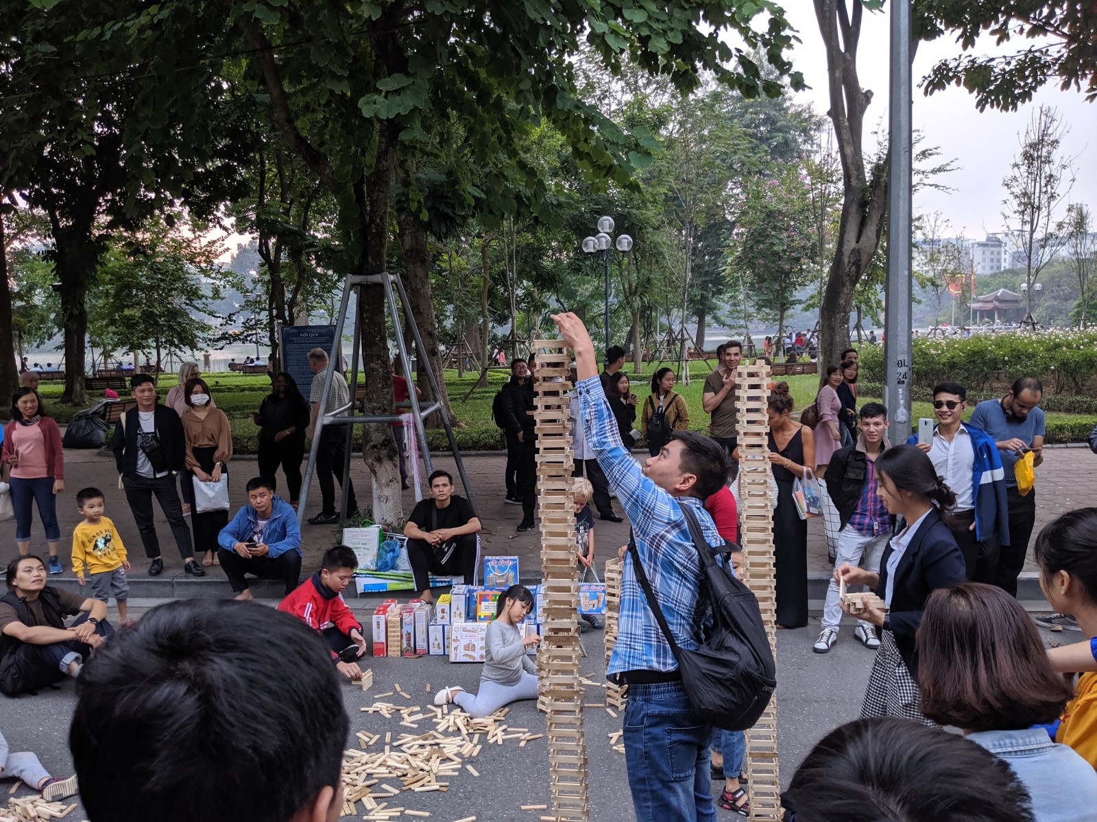 At the weekends this relaxed / frenetic atmosphere reached a crescendo on the wide boulevards of Hoan Kiem Lake which are closed to create a kind of ‘just because’ public fun space for tango dancing, giant games of Jenga, kids in Barbie cars and the local variation on footbag – or whatever else you feel like doing.