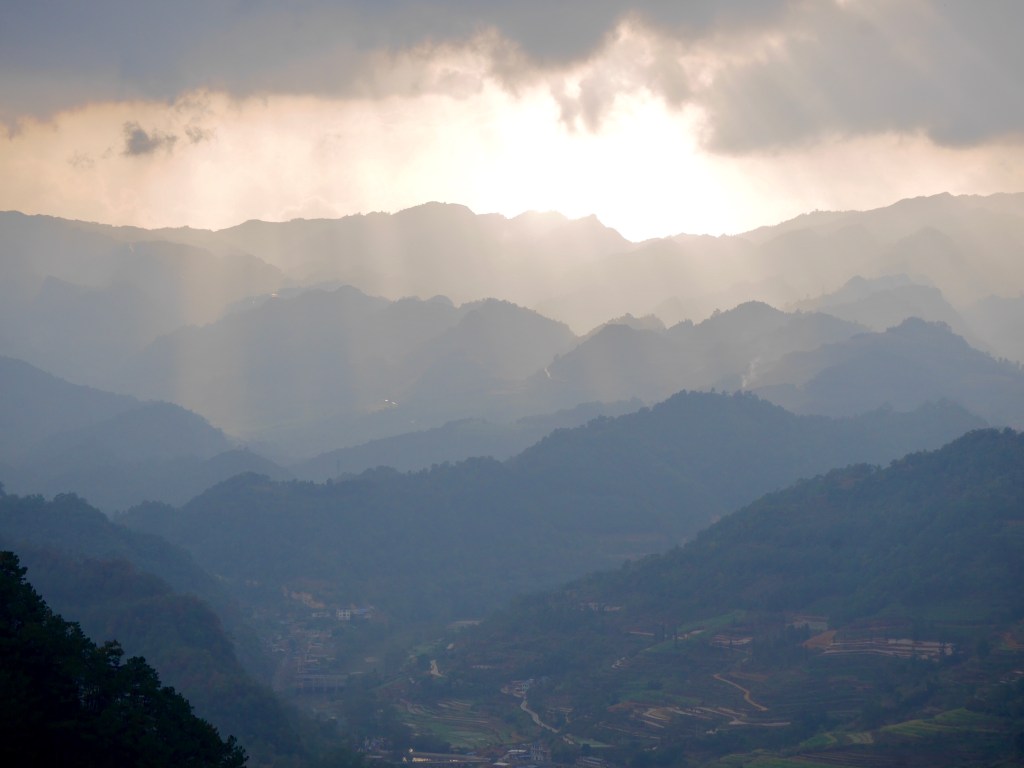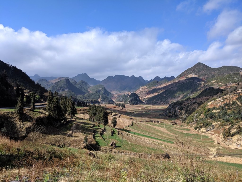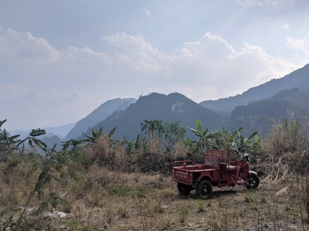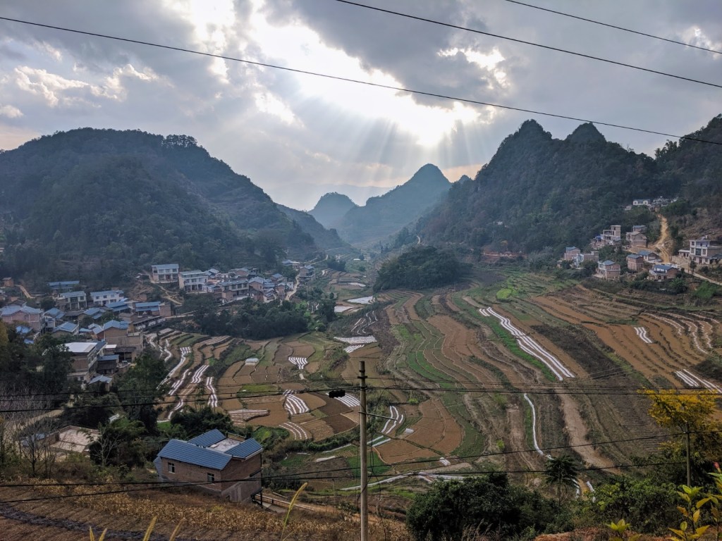 Lunch sorted, I climbed out of Malipo and back into the countryside. It was very hilly. Terraces were carved in for crops. They looked nice but didn’t make the riding any easier.