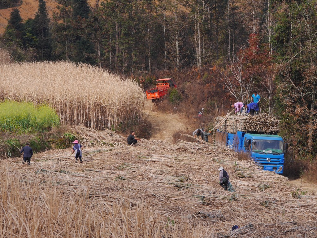 Occasionally I’d pass a big work party, like the group cutting cane below. It was December though and for the most part I saw nobody other than the occasional farmer wandering with a buffalo or tending to a market garden.