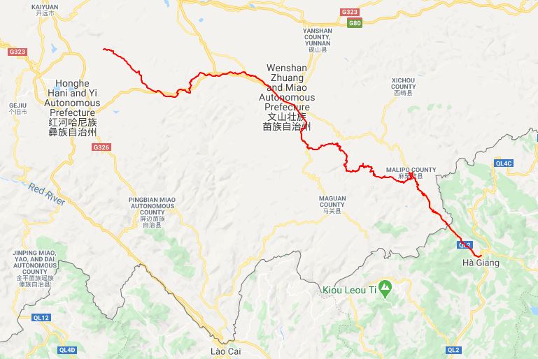 Ha Giang to Yangjie: 178 miles