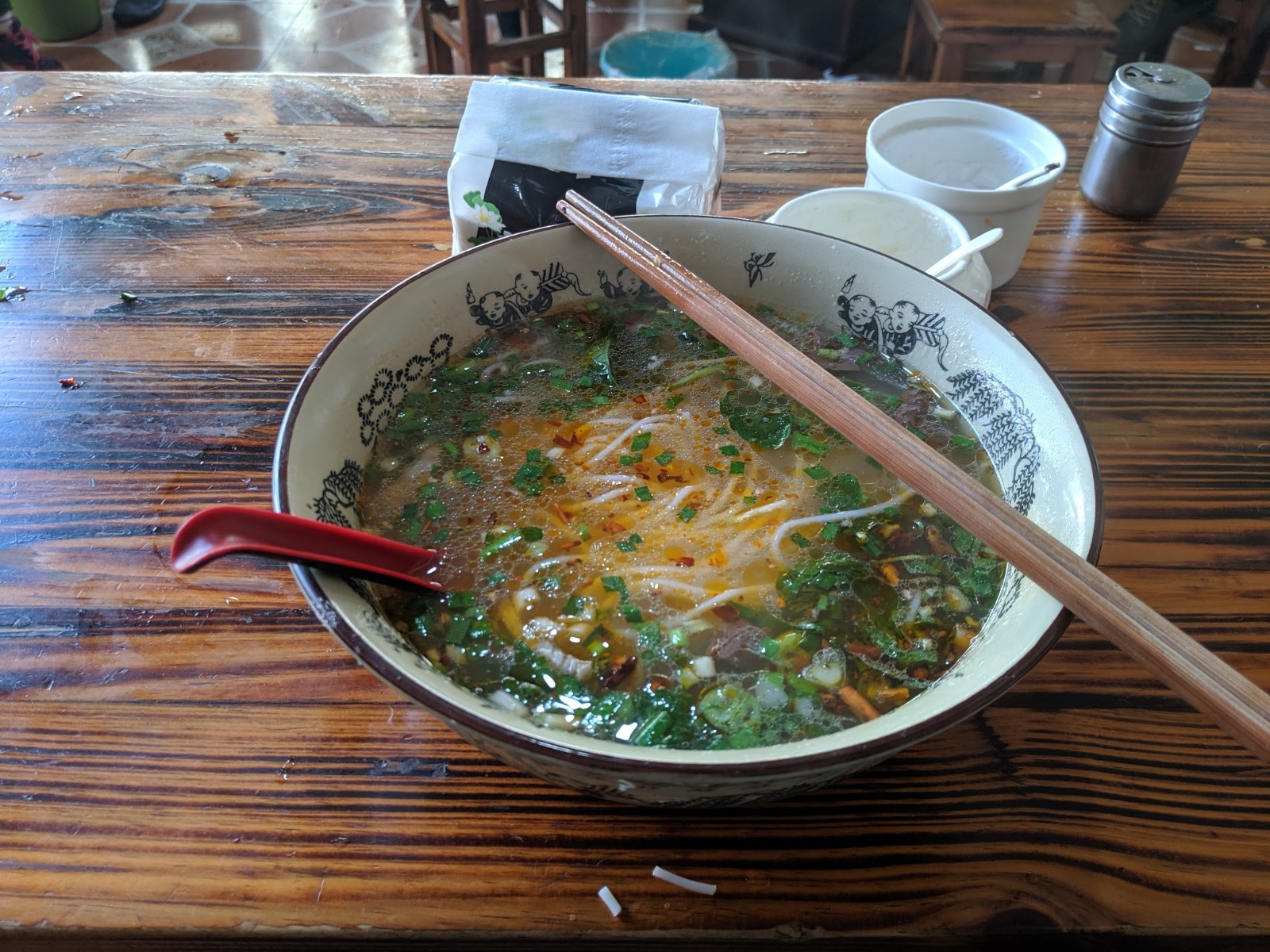But it soon cleared with the bright chilli oil and cheery smiles of this small town noodle shop. As the cheapest and most available option, I would eat a giant cauldron like this at least once a day for the next 5 weeks!