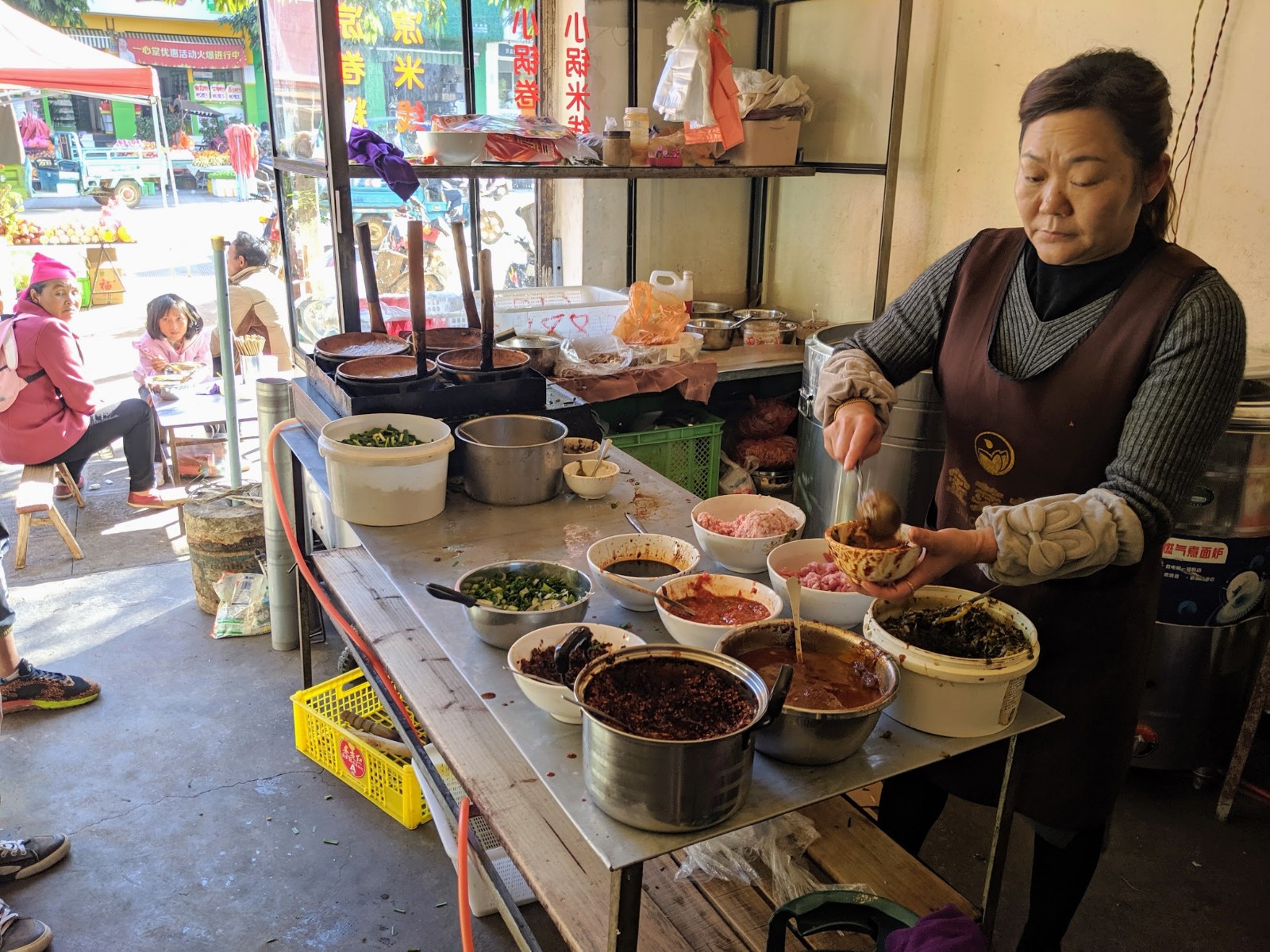 After a nice stretch along the shoreline it was a straight forward 30km run into Kunming. Happy that I’d now make it for Christmas, I pulled in at a breakfast place for a rest, ordering fried sesame balls, a kind of purple bean porridge and a big handful of sweet bao buns. I decided I would 100% open my own Chinese breakfast place when I got back to the UK and communicated as much to the proprietor with a hearty xiè xiè (thank you!) on the way out.