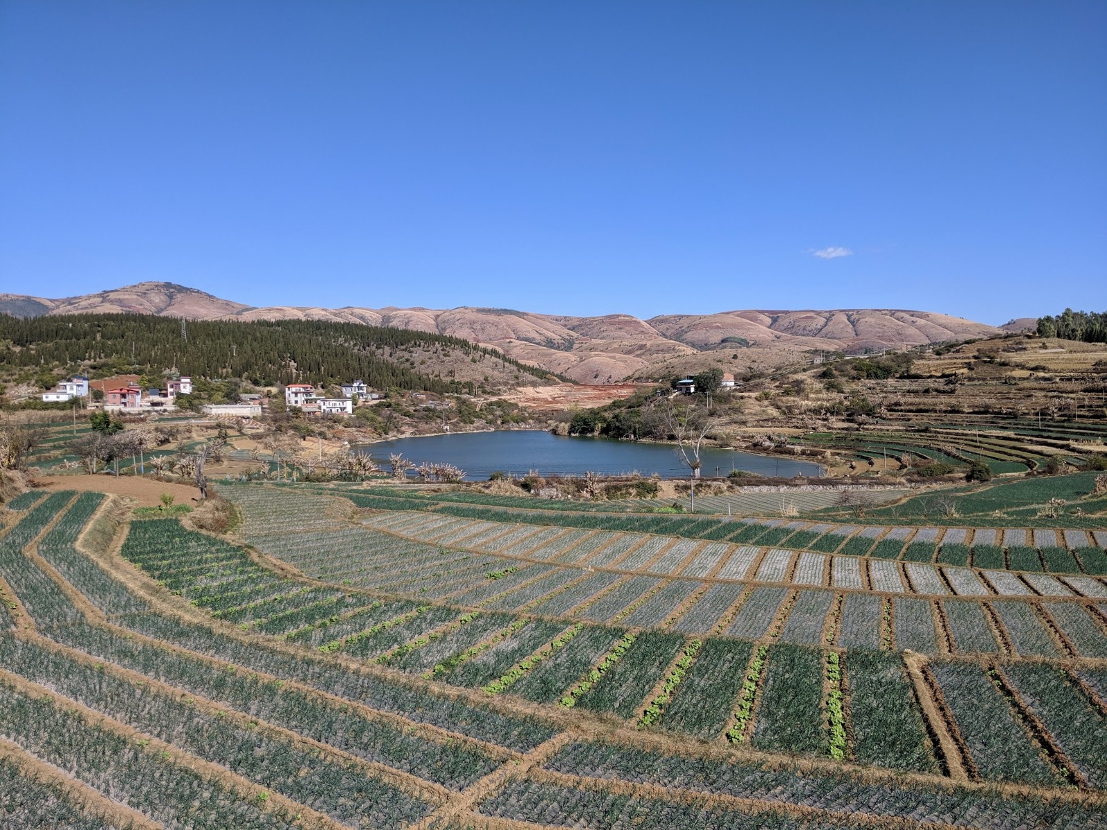 I couldn’t camp among the neat rows of spring onions so was pushing hard to reach Fuxian Lake, a nature reserve not far from Kunming. This plan was scuppered by terrible roads toward the end of the day.