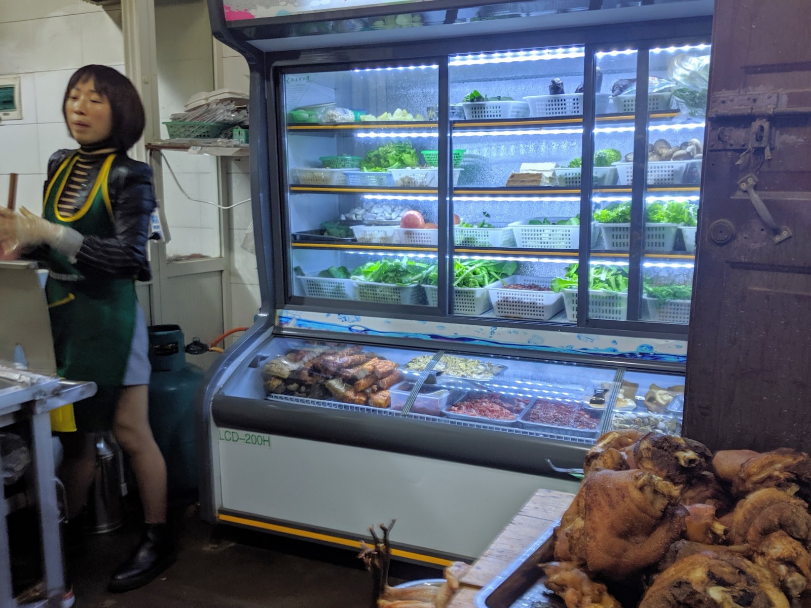 I’d learned from my language tape that instead of saying “I would like to order”, the Chinese actually say “I would like to point“. The fridge is always front of house, so you just gesture at whatever looks good! It’s a great system.