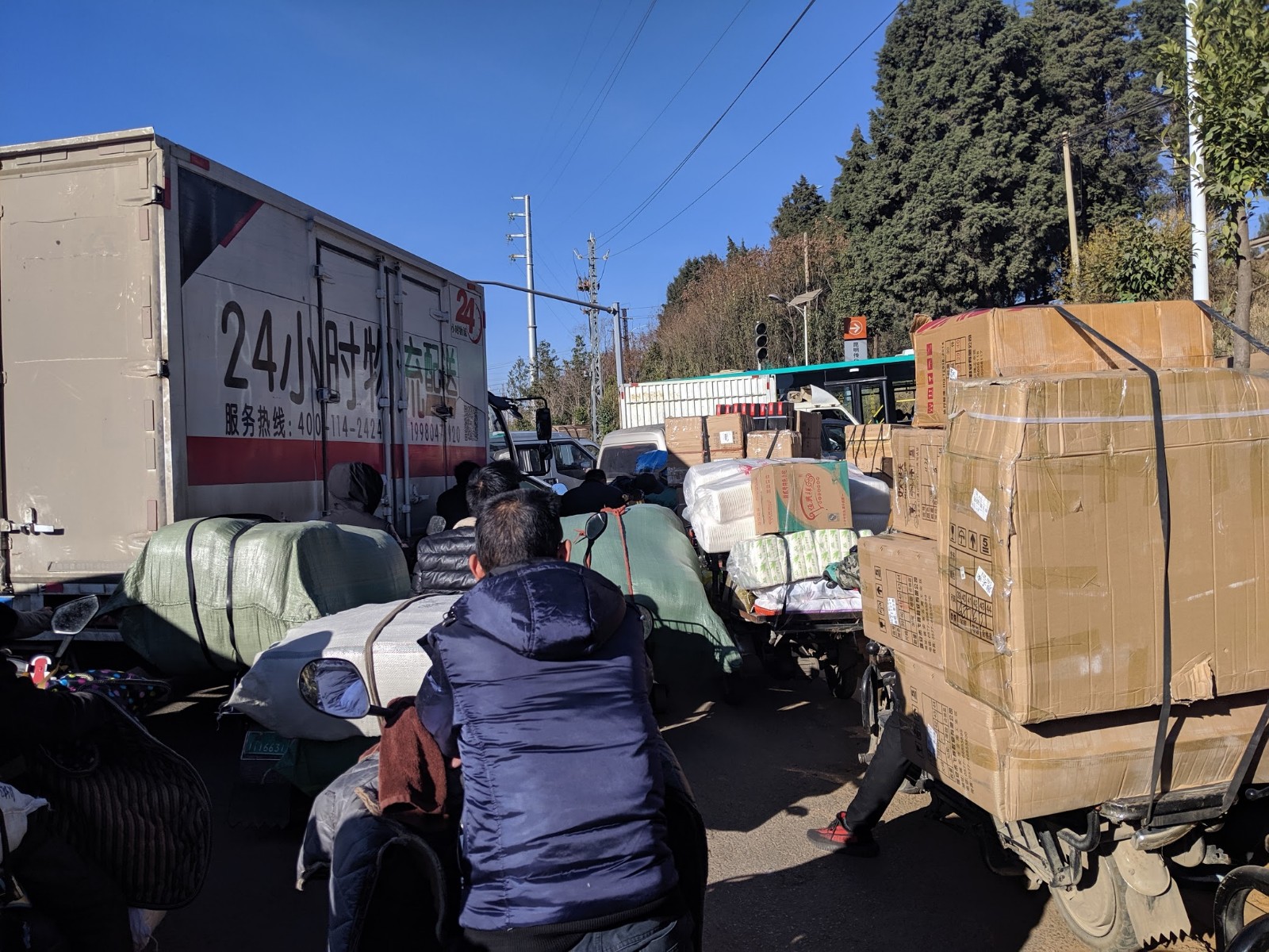 Leaving the ghost town behind, I thought hard about my imaginary bao bun business, reaching the outskirts of Kunming by late afternoon. Here I got stuck in a traffic jam (in the motorbike bike lane) – which I found funny.