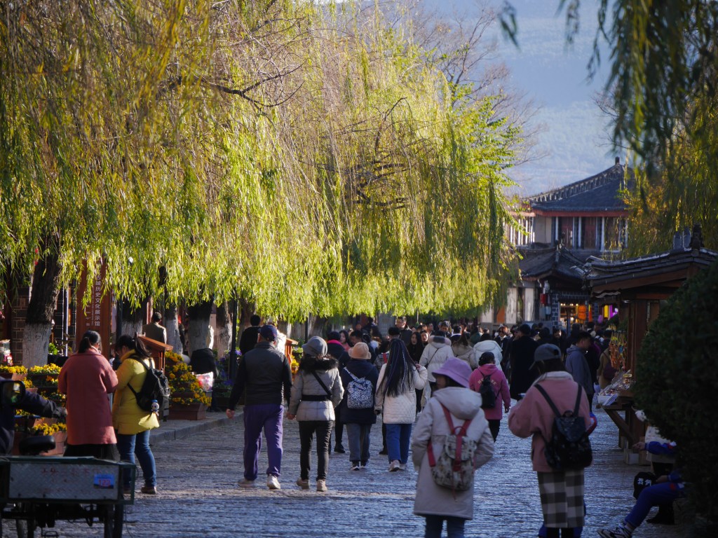 In theory Lijiang is a UNESCO world heritage site – in practice it’s a tour group mecca and another experimental exercise along the ‘historic town – shopping mall’ mould. I don’t think anyone at all lives in the old town – so every unit of space is 100% dedicated to grabbing the attention of passers by: chocolate fountains, gem stones, giant dried fungus, traditional medicine, ice creams, tea to take home to grandma.