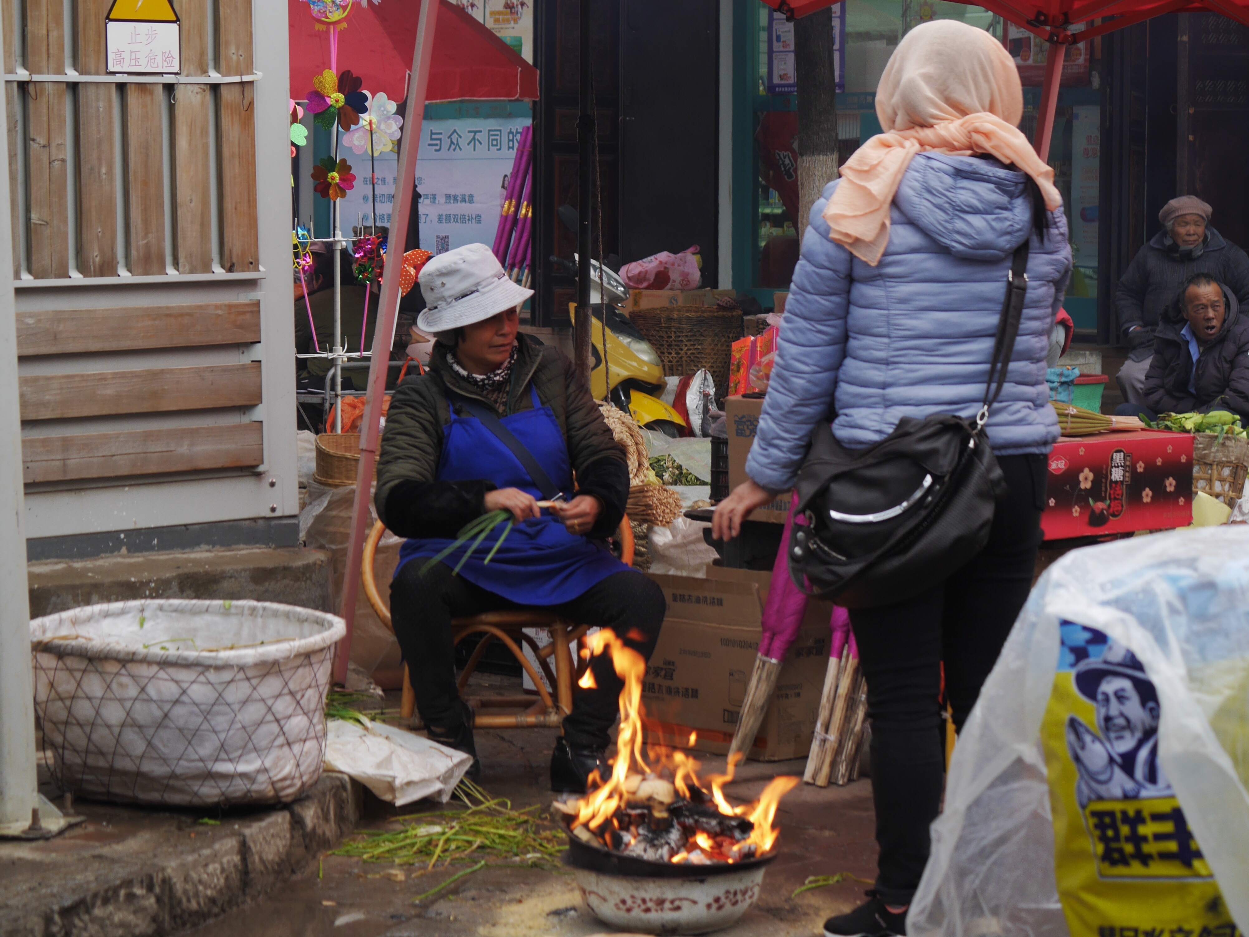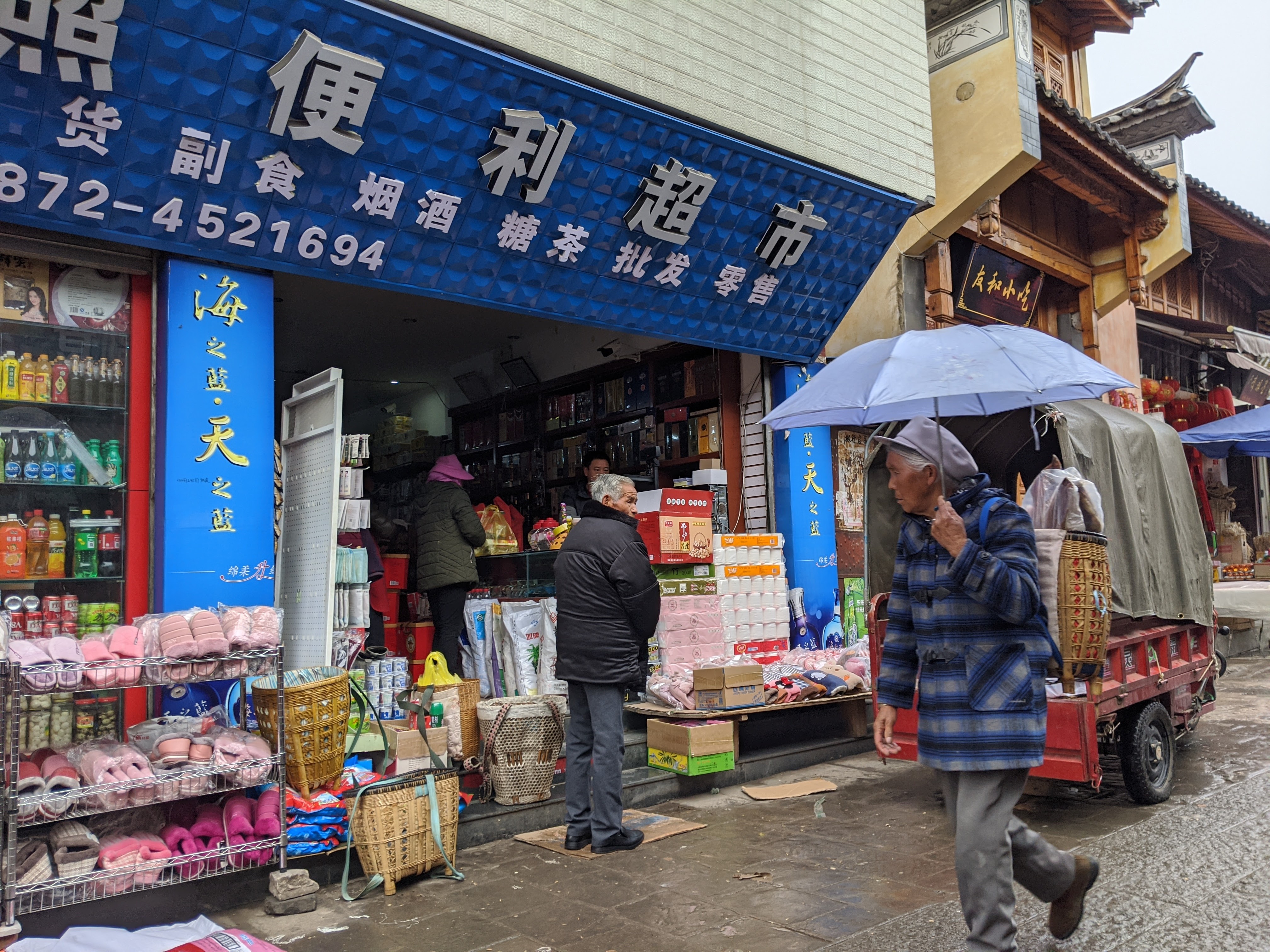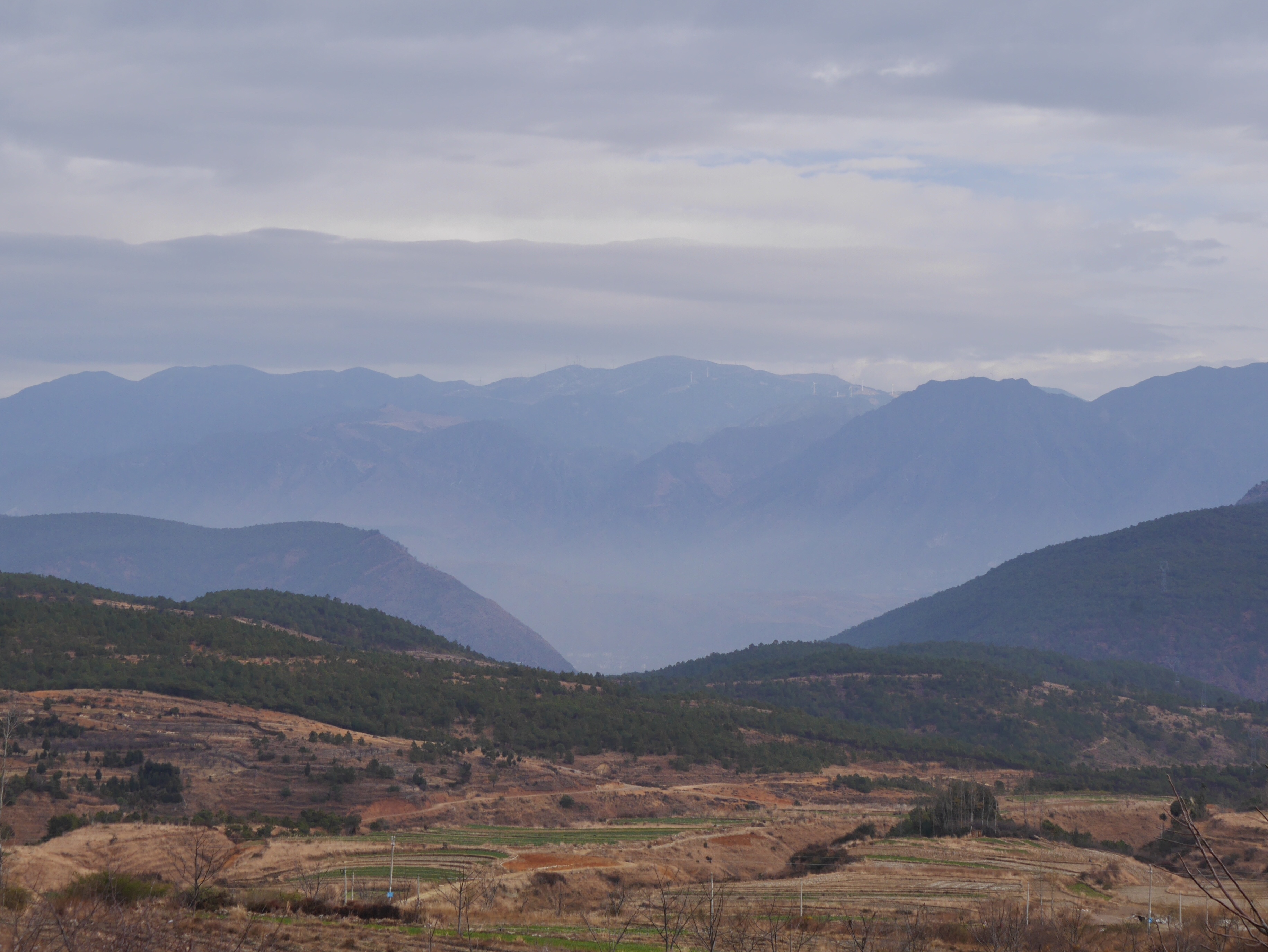 I hung around for ages in this particular shop, trying to warm up, then called in at the petrol station next door before tackling one final climb over the ridge toward Lijiang. Petrol stations had always been my friend, but you couldn’t guarantee what you’d find in terms of bathroom facilities. This was a quiet road, so privacy wasn’t an issue, but you wouldn’t want to be caught out here with a crowd.