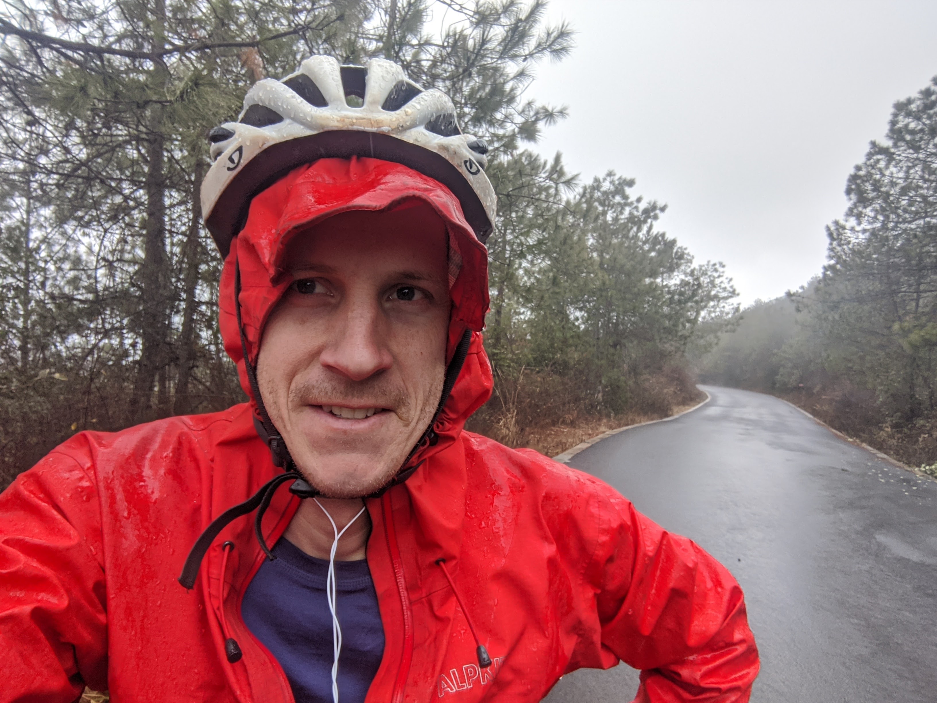 Grim was the weather too – just as my artist friend had warned. I could manage a wry smile on the ascent (warm enough). But the full fury of the ice gods rained down once again as I reached today’s peak – with snow, sleet and hail hitting sharp and heavy at 90 degrees to my face the whole way down to Lijiang.