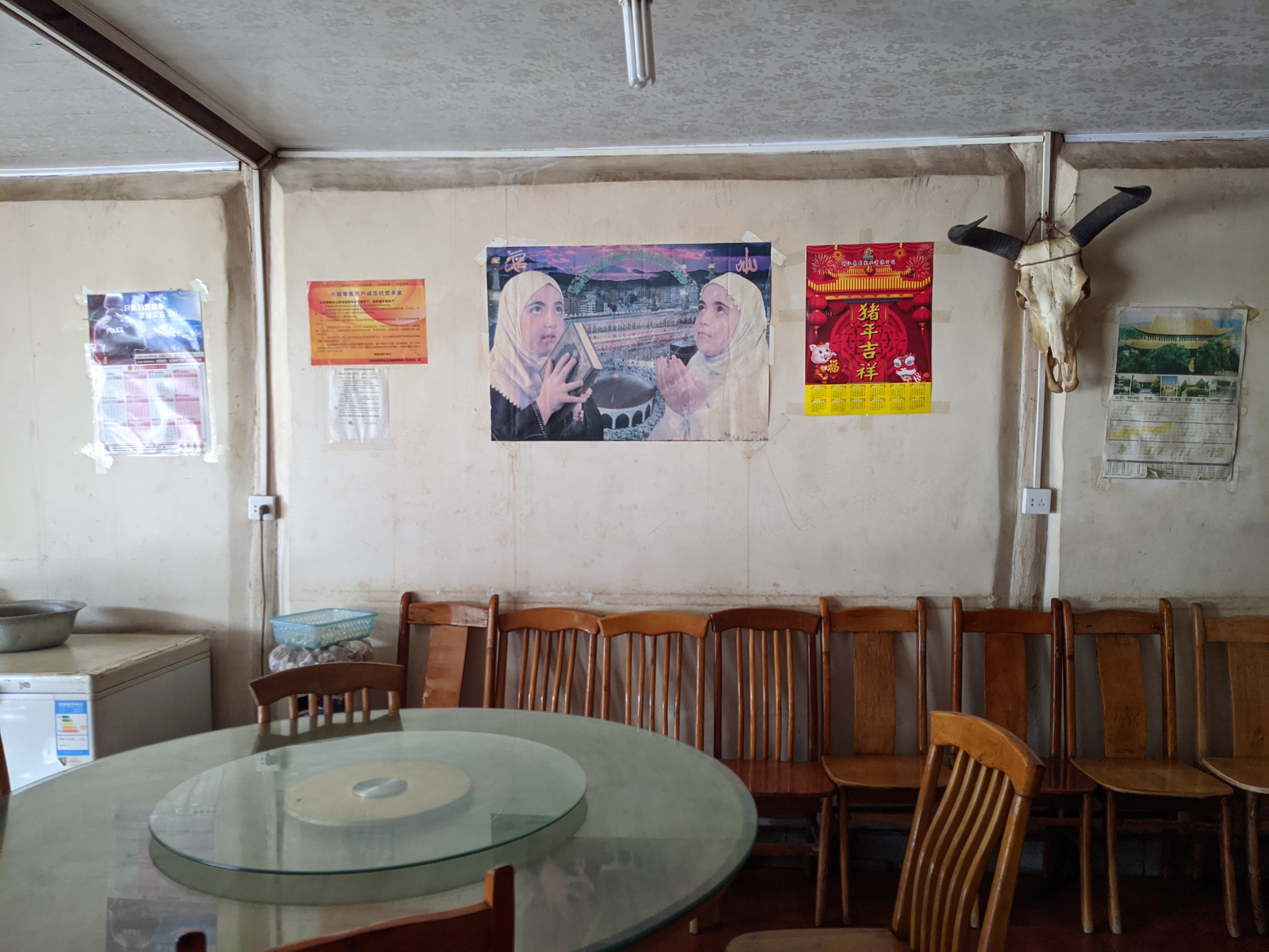 My ride was a breeze by comparison, but on a grey day like this I always needed a bit more motivation and kept half a mind on the next meal to spur me on. Perhaps a little surprisingly – given what we know of Xinjiang – pretty well every town I passed (of any size) had a Muslim restaurant. This was usually announced by a green sign, dangling lamb carcasses and the odd flourish of Arabic script (where the owners felt bold). These restaurants are relied on by everyone and were as ubiquitous as kebab shops back home.