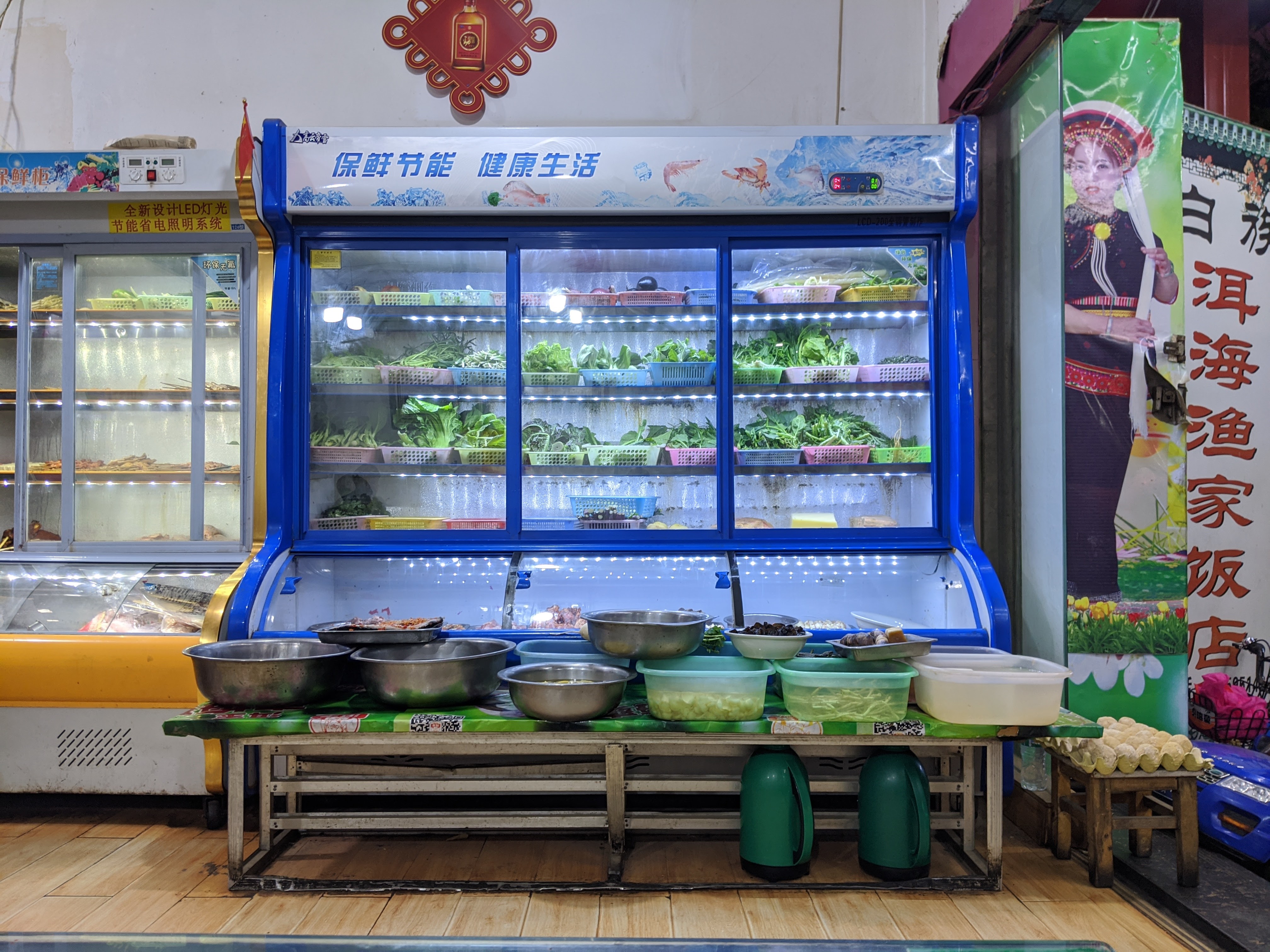 Nothing really happens for NYE in rural China so I just headed out for a quiet meal. A zillion greens to choose from as usual (incredible!), but this was a venue of distinction: