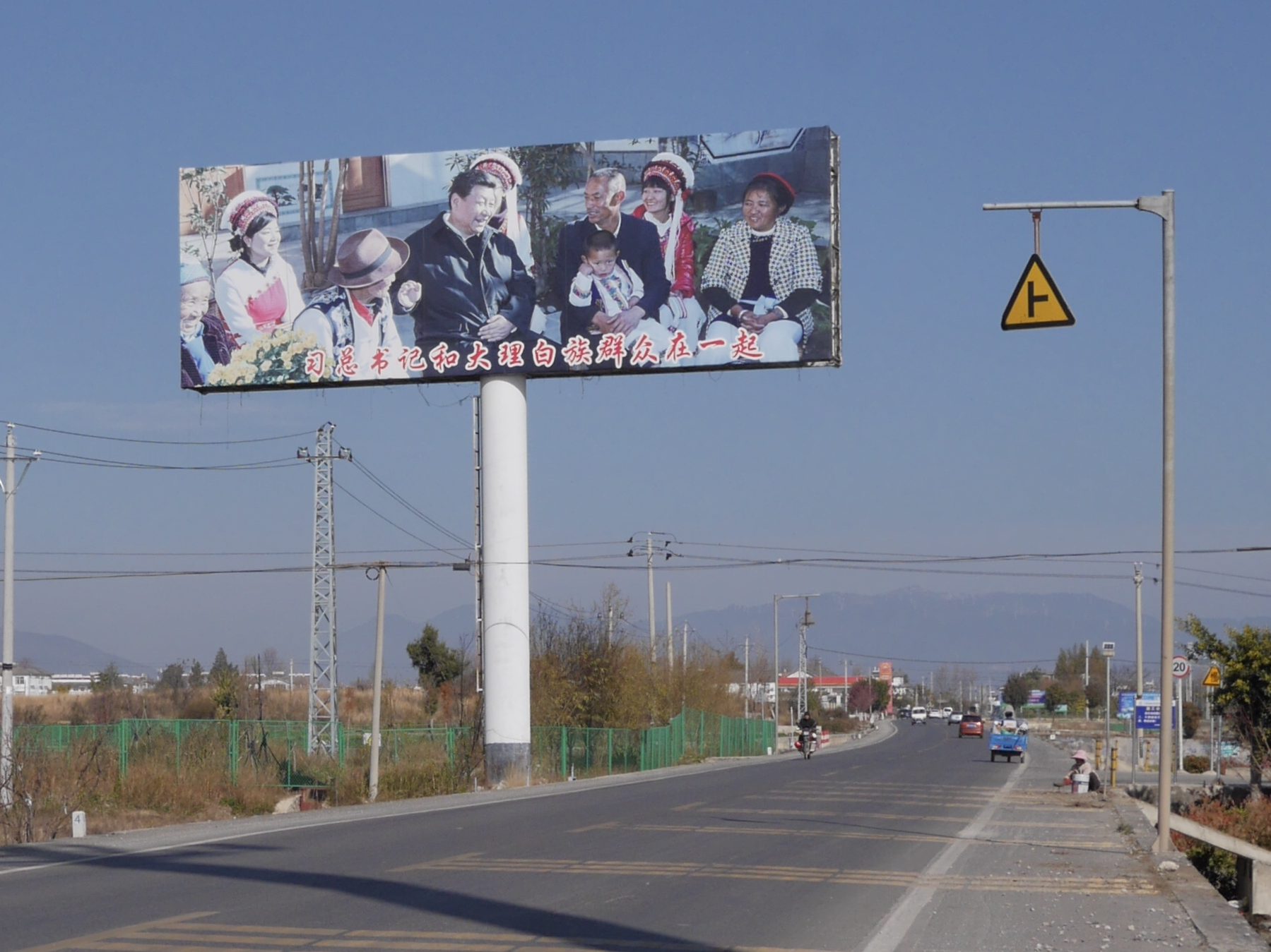 Traditional dress, local food and batik handicrafts provide interest for visitors, but they also represent conflicting loyalties for Beijing. Here Chairman Xi towers over the road as a casual man of the people. The party is your friend!