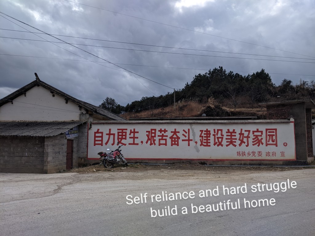 Shaxi is beginning to market itself as a tourist centre but, as it’s nowhere near any main roads, it gets little traffic and has (for now) escaped the ‘beautification’ squads that seem to be face-lifting so many of these places out of existence. I wandered around taking pictures of the crumbly walls in the rain the next morning, said bye to my artist friend and charged up on another double helping of hot soy milk before retuning to the saddle.